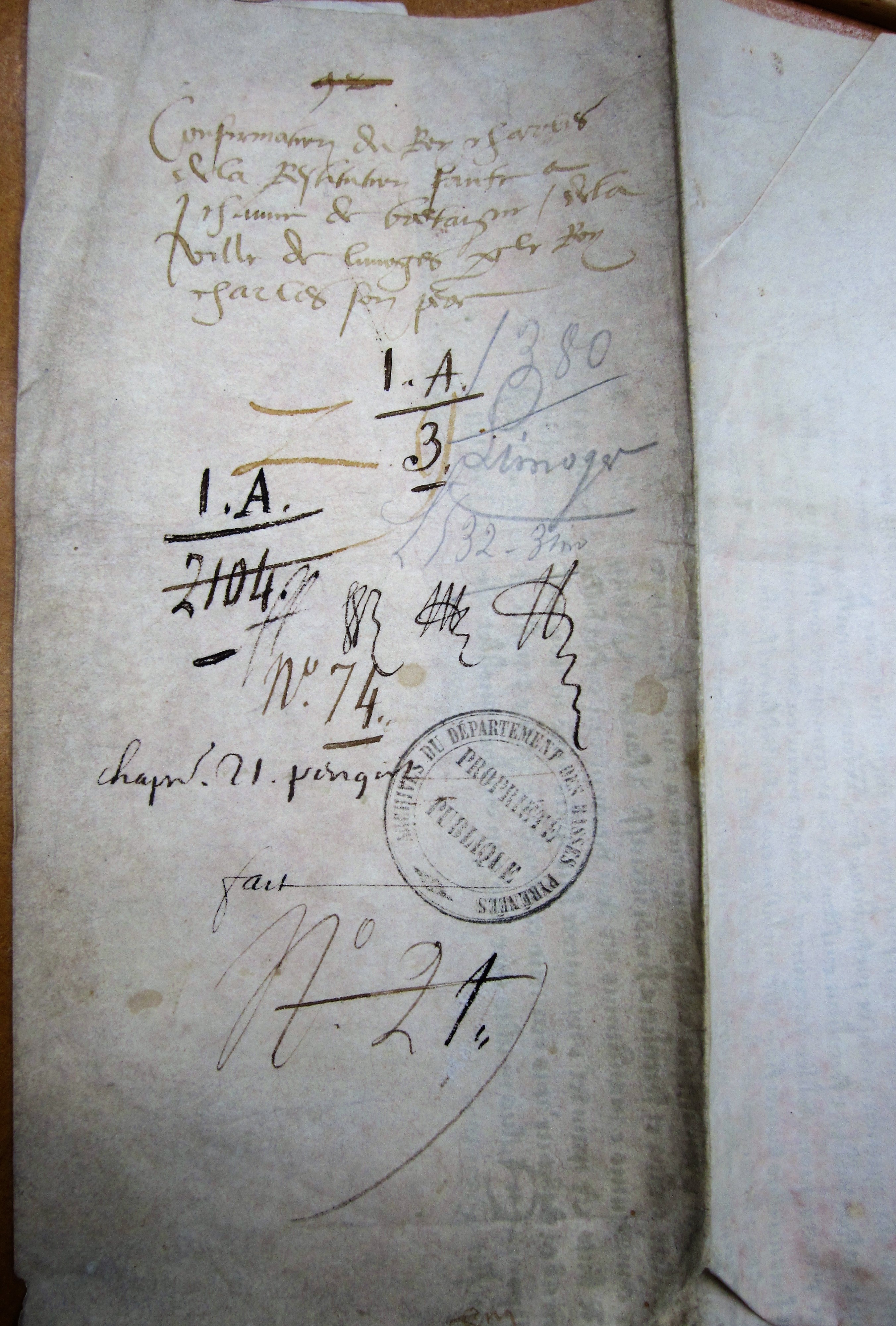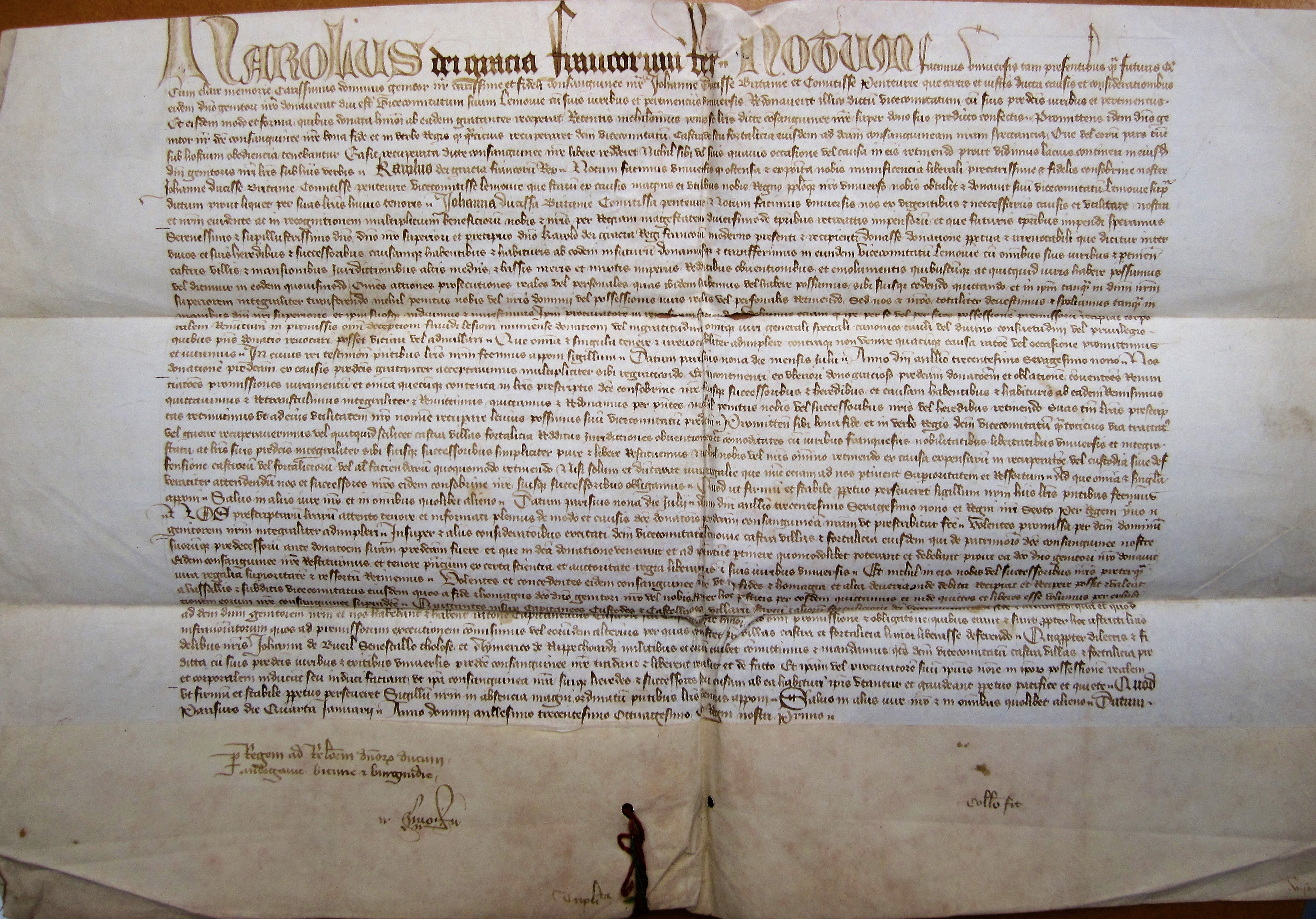 Confirmation par Charles V de la restitution de la ville de Limoges faite par son père à Jeanne de Bretagne (1380 v. st.)