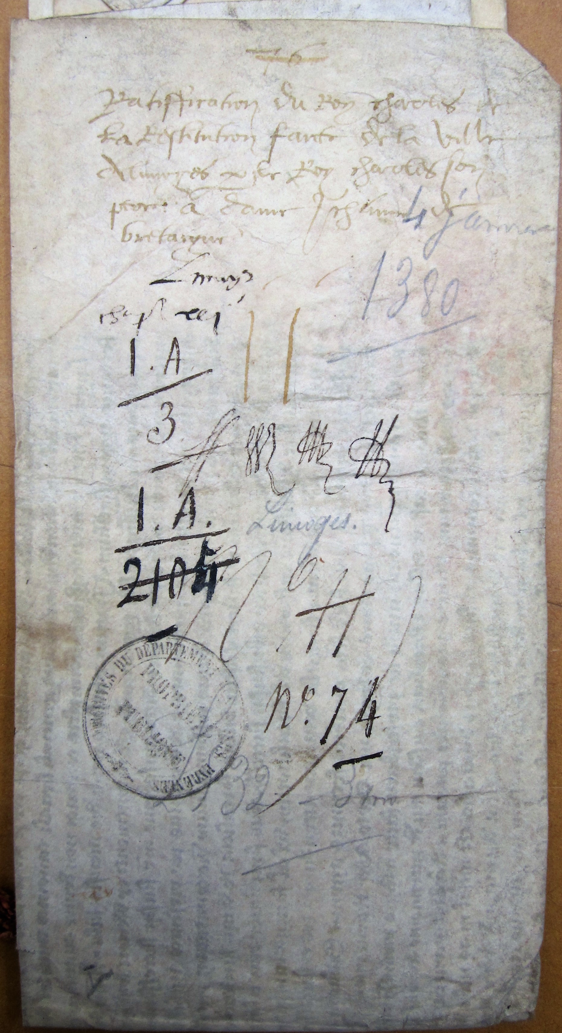 Ratification du roi Charles de la restitution faite de la ville de Limoges par le roi Charles son père à Jeanne de Bretagne comtesse de Penthièvre.