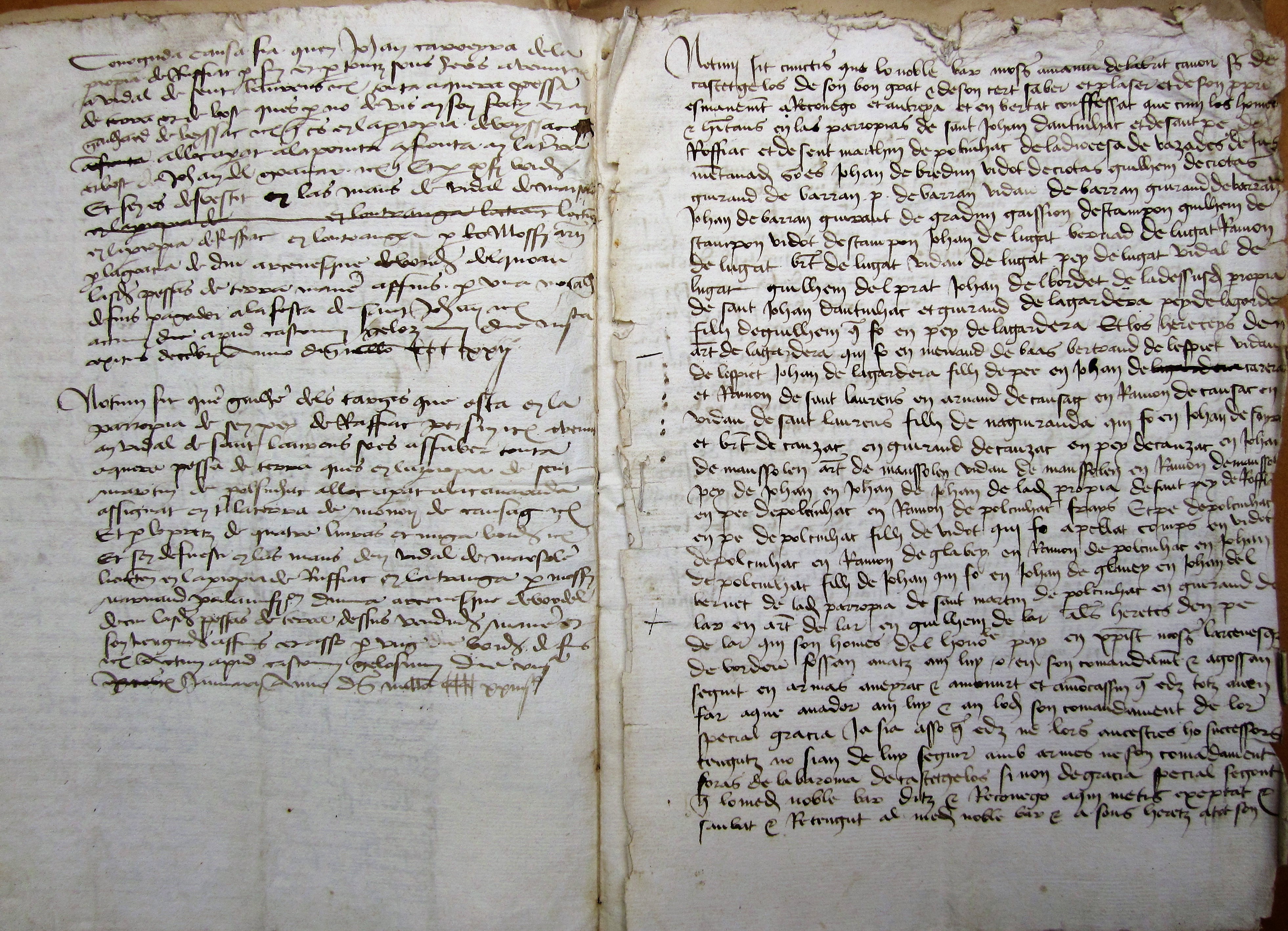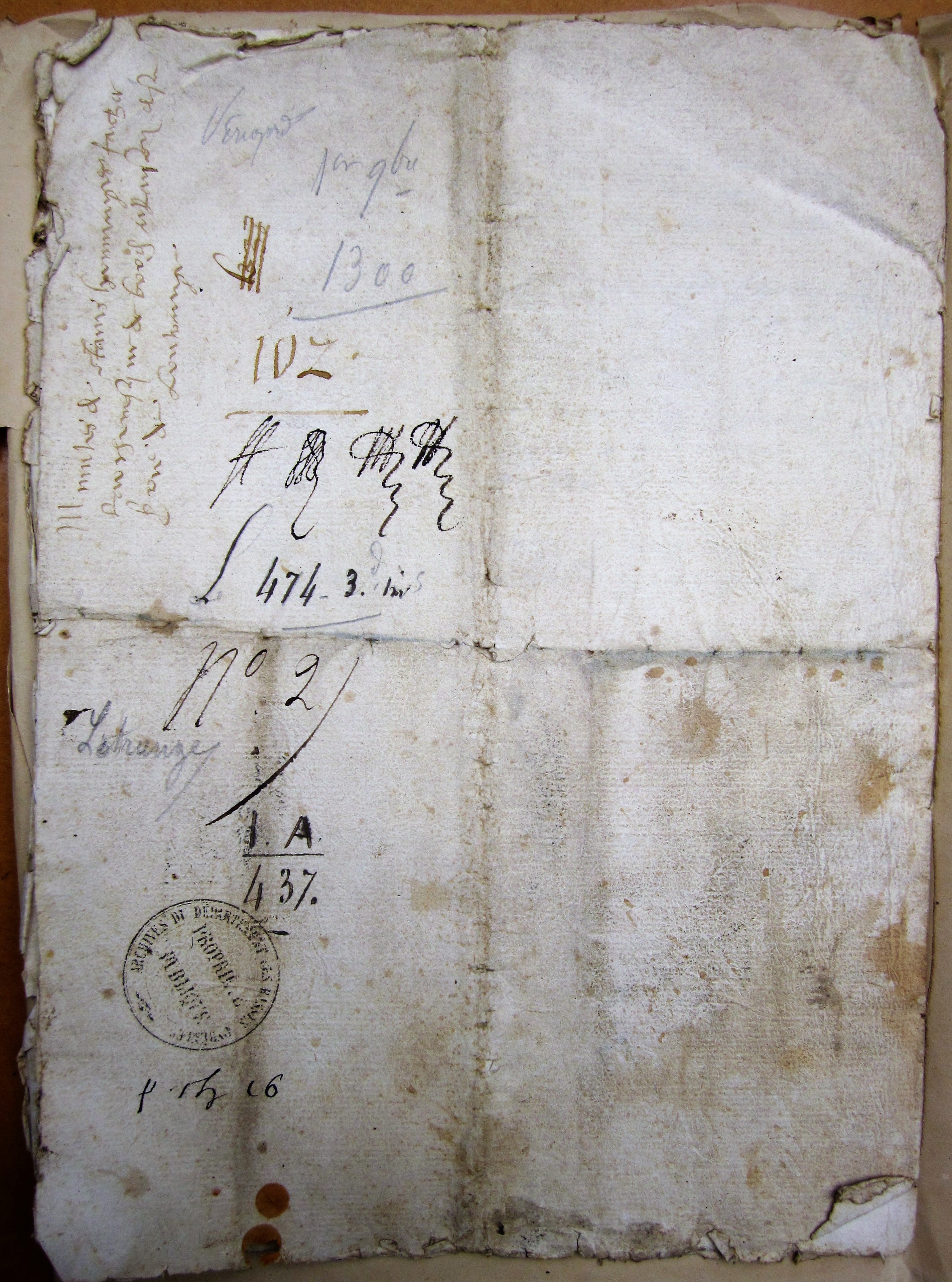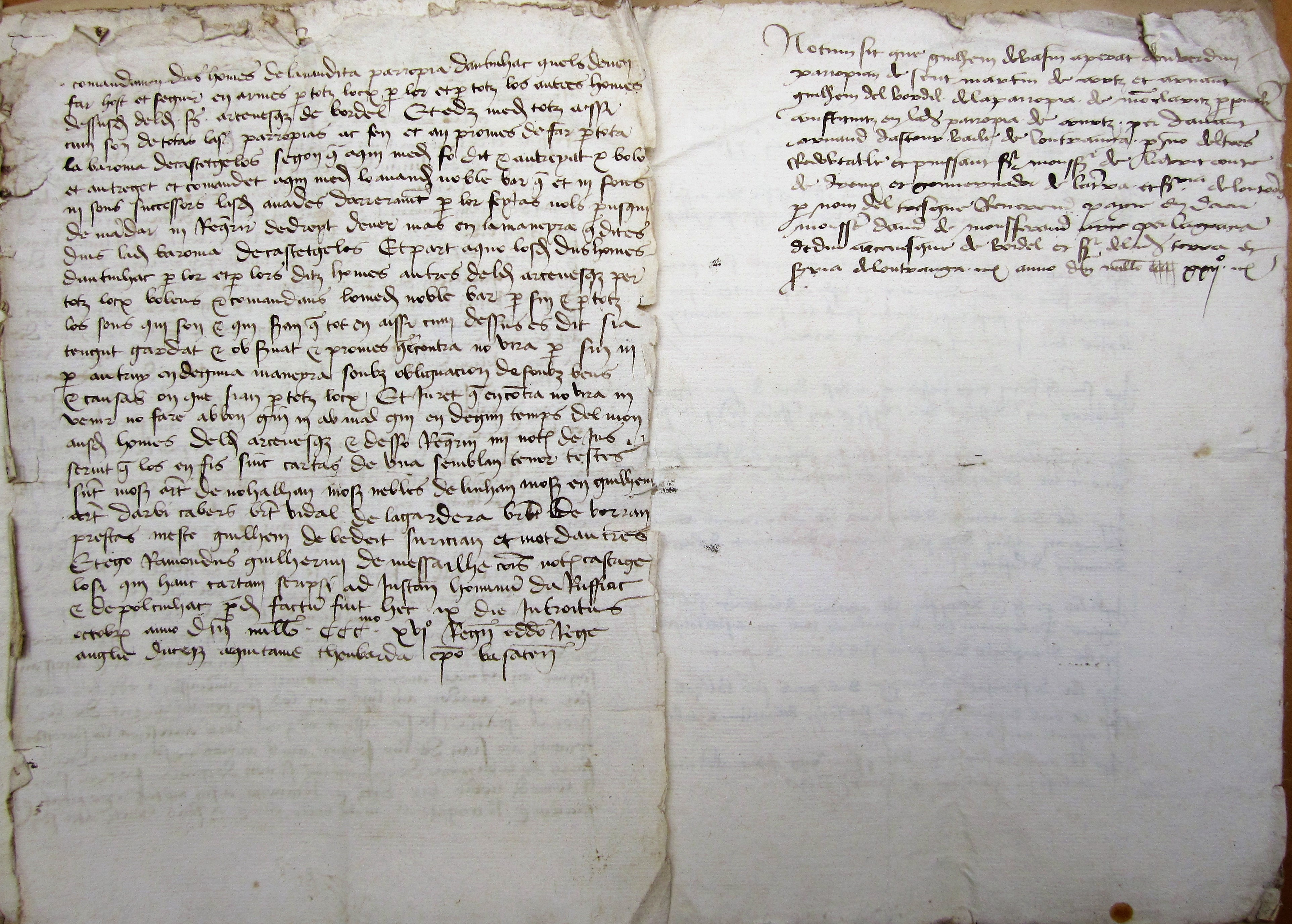 Minutes des hommages rendus à Bertrand, archevêque de Bordeaux, par Guilhem de Caumont et Jourdain de Lisle, pour la seigneurie de Letrange (1300)