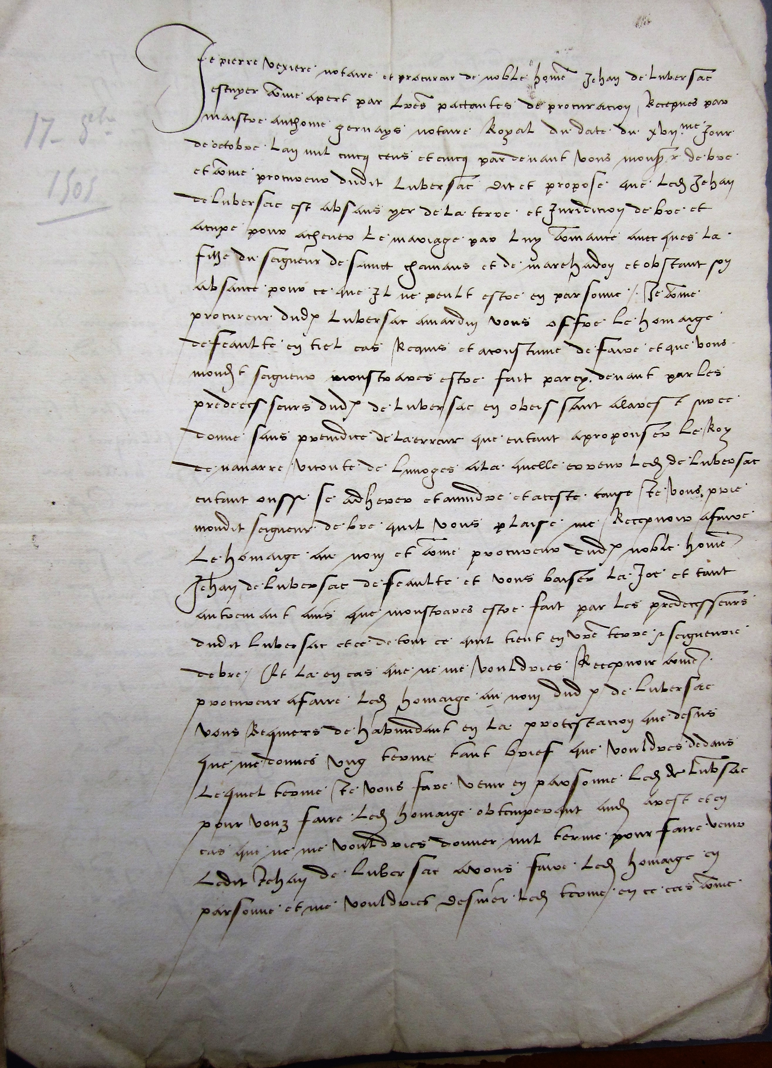 Instrument du seigneur de Lubersac offrant faire hommage au seigneur