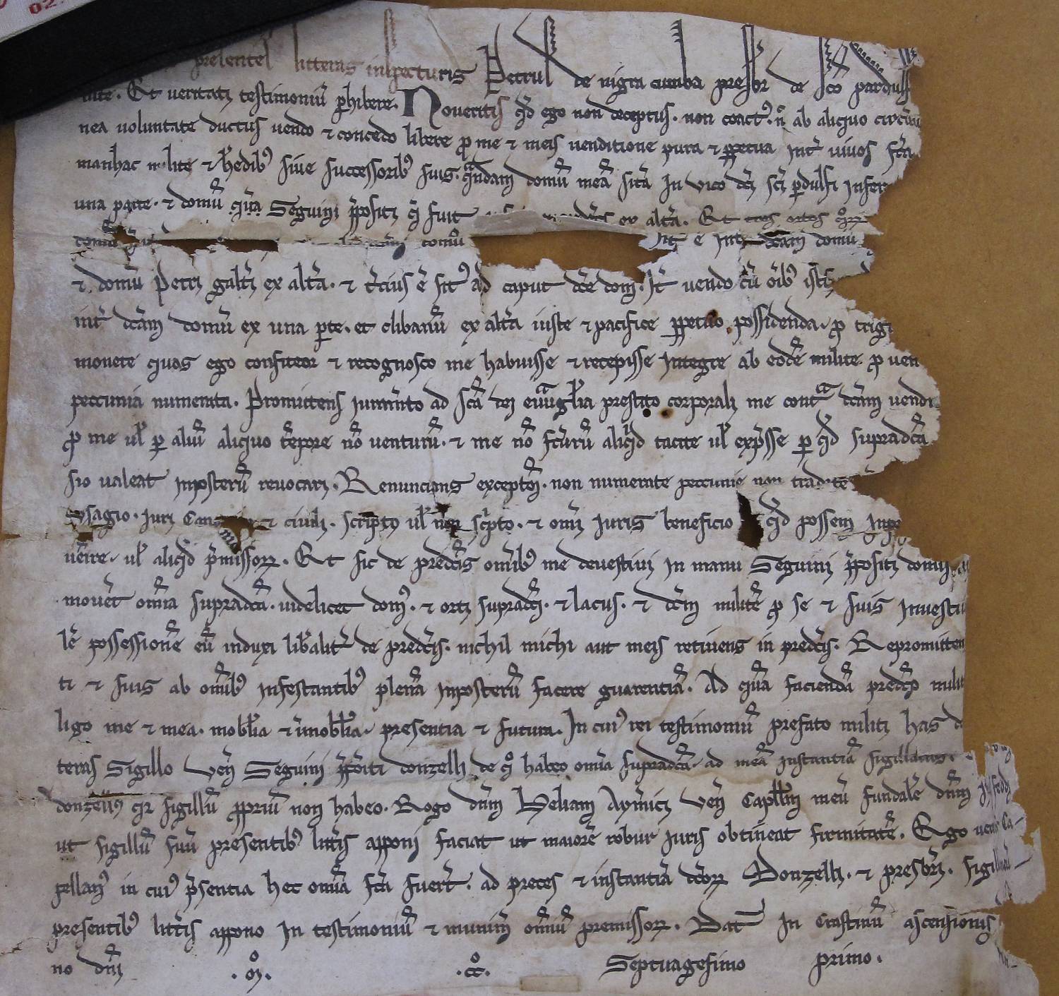 [Universis has] presentes litteras inspecturis Petrus de Nigra Cumba presbiter de Sancto Pardulf. ………………….