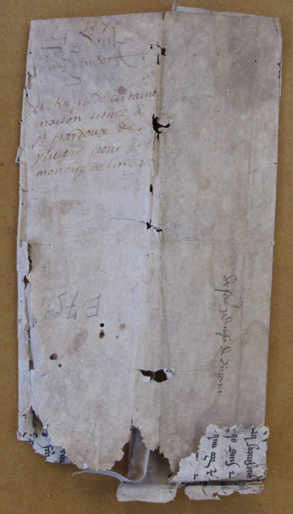 Manhac milite & heredibus sive successoribus suis quondam domum meam sitam in vico dicti Sancti Pardulfi [infer….