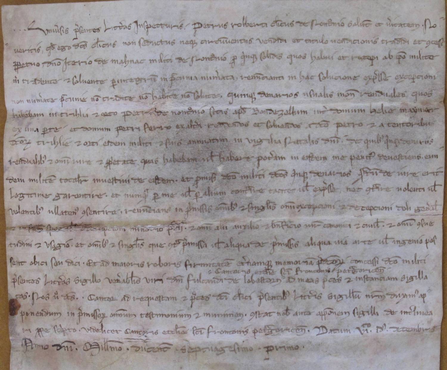 1 . Universis presentes litteras inspecturis, Petrus Robberti clericus de Nontronio , salutem et veritatem. No-