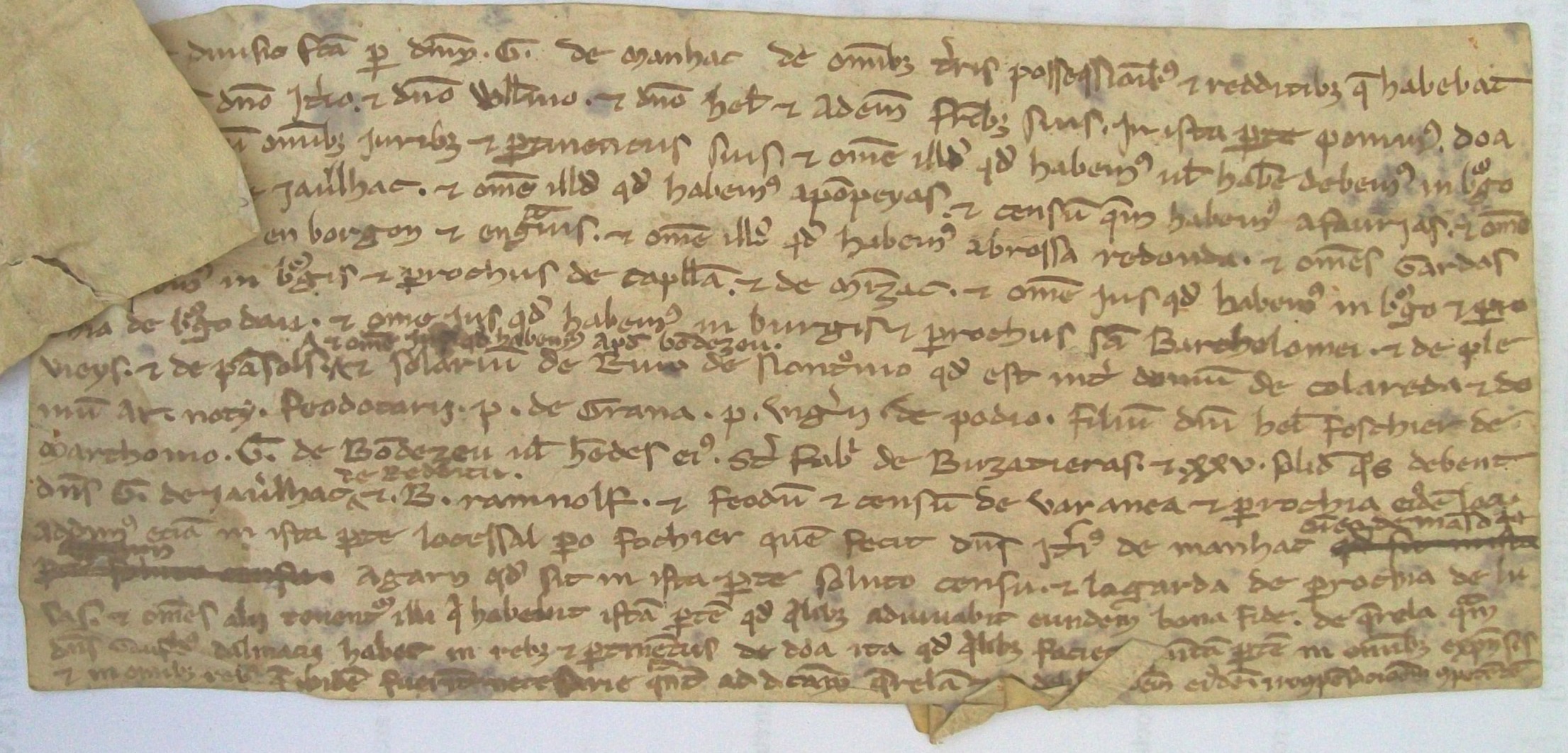 [ quas habe ] mus in burgis et parrochiis de Cap… et de Minzac, et omne jus quod habemus in burgo et parro-