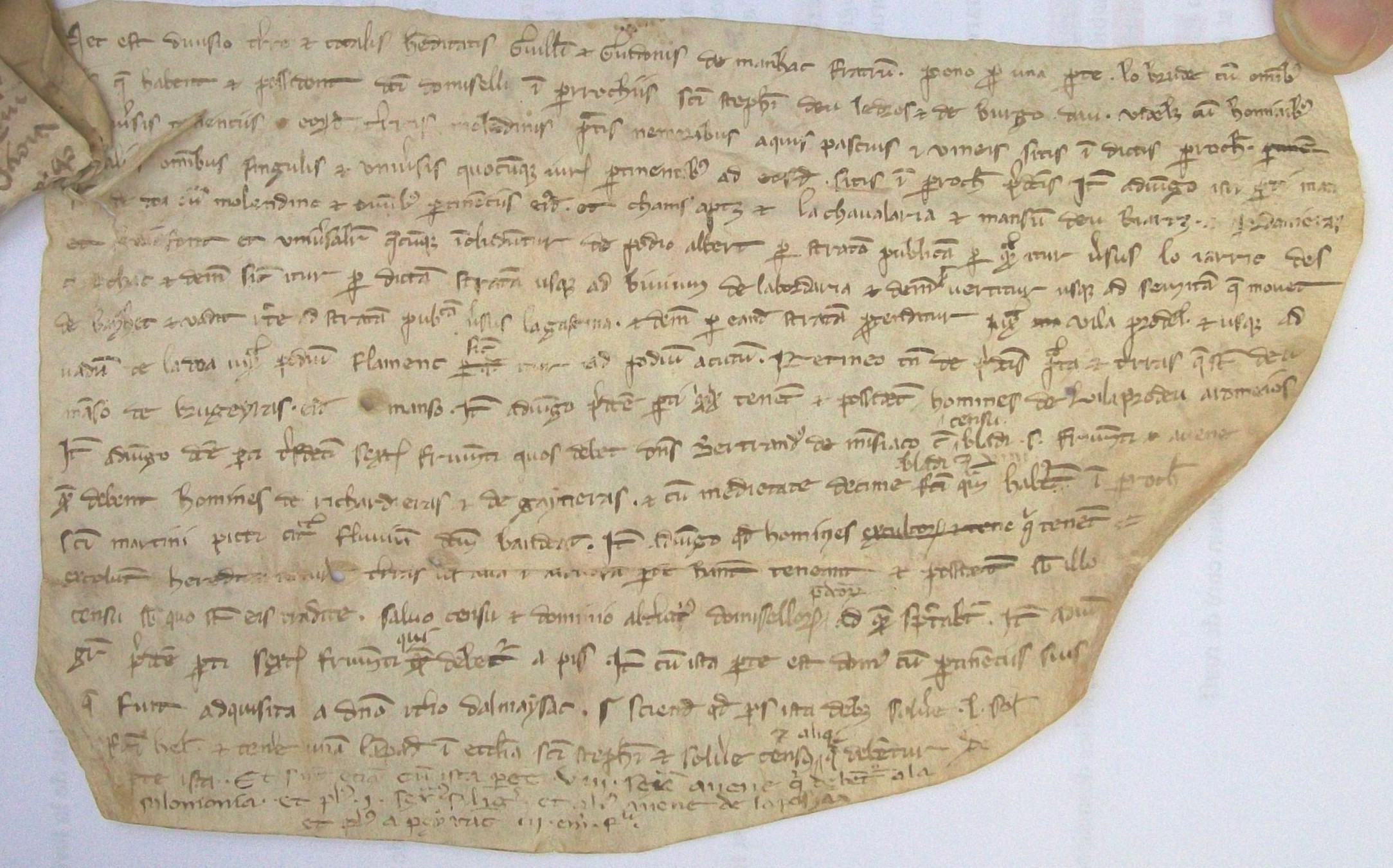 (nam) de Doa cum molendine et omnibus pertinentiis eiusdem et Chamsaptz et la Chavalaria et mansum deu Biarez …… ……