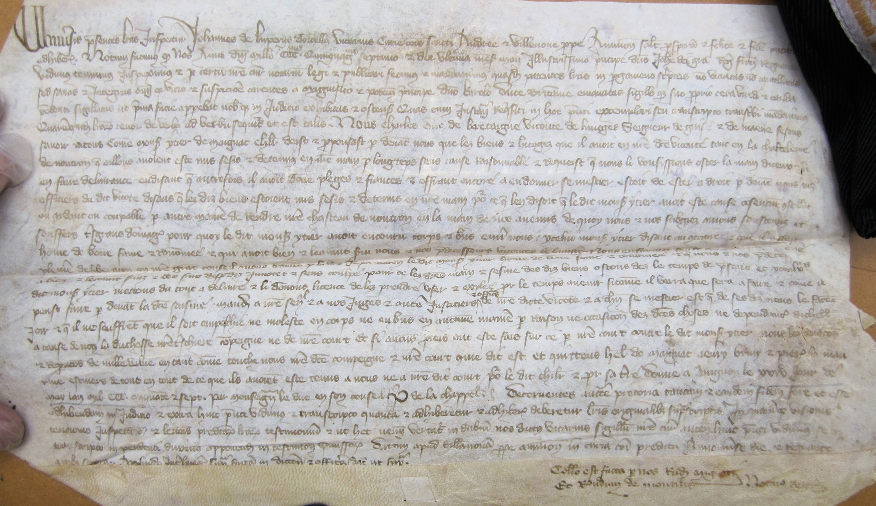 Mainlevée accordée par Charles, duc de Bretagne, vicomte de Limoges, à Itier de Magnac pour tous ses biens saisis (29 mai 1357)