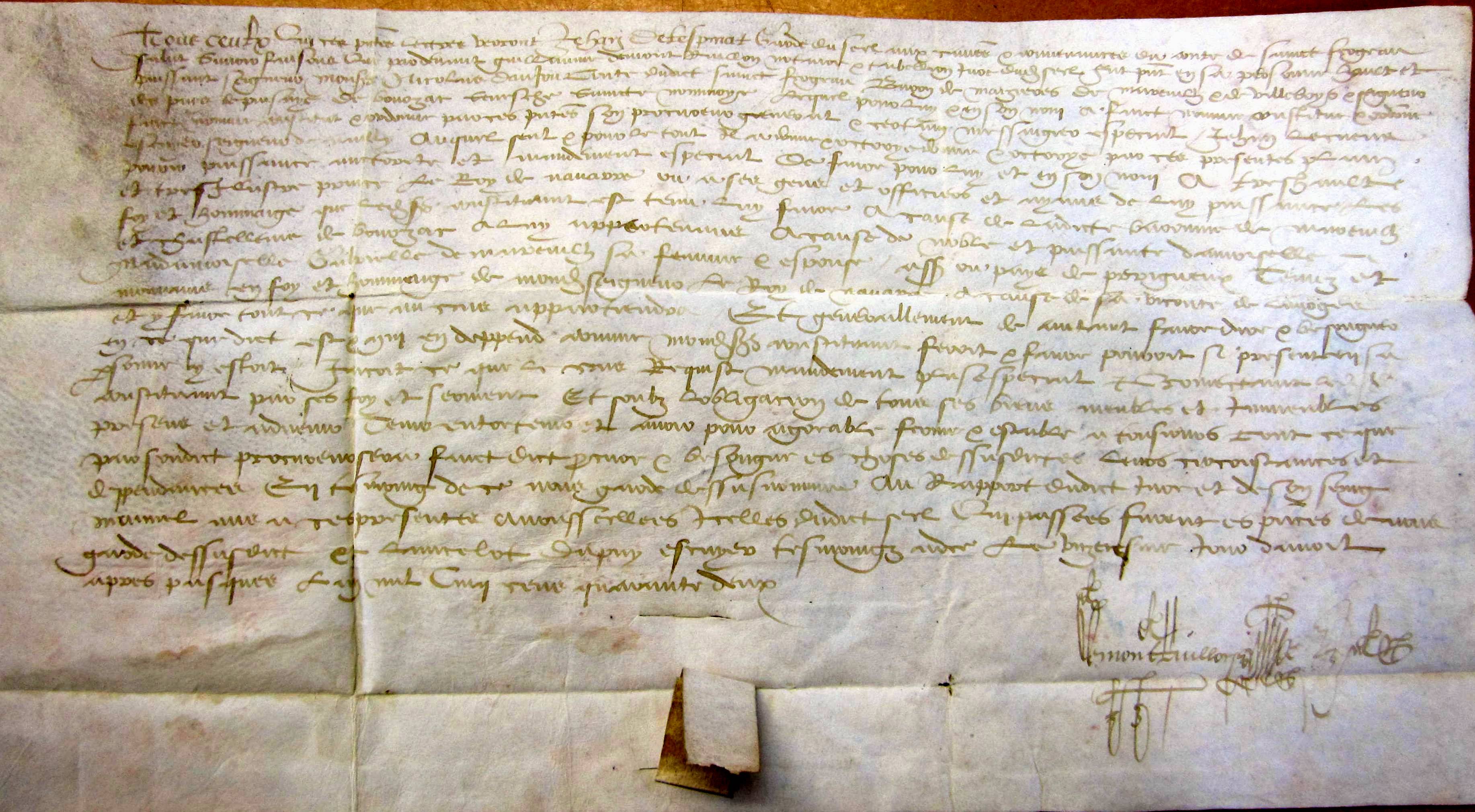 Hommage rendu à Henri II de Navarre par Nicolas d'Anjou, comte de Saint-Fargeau, pour la baronnie de Mareuil (1542).