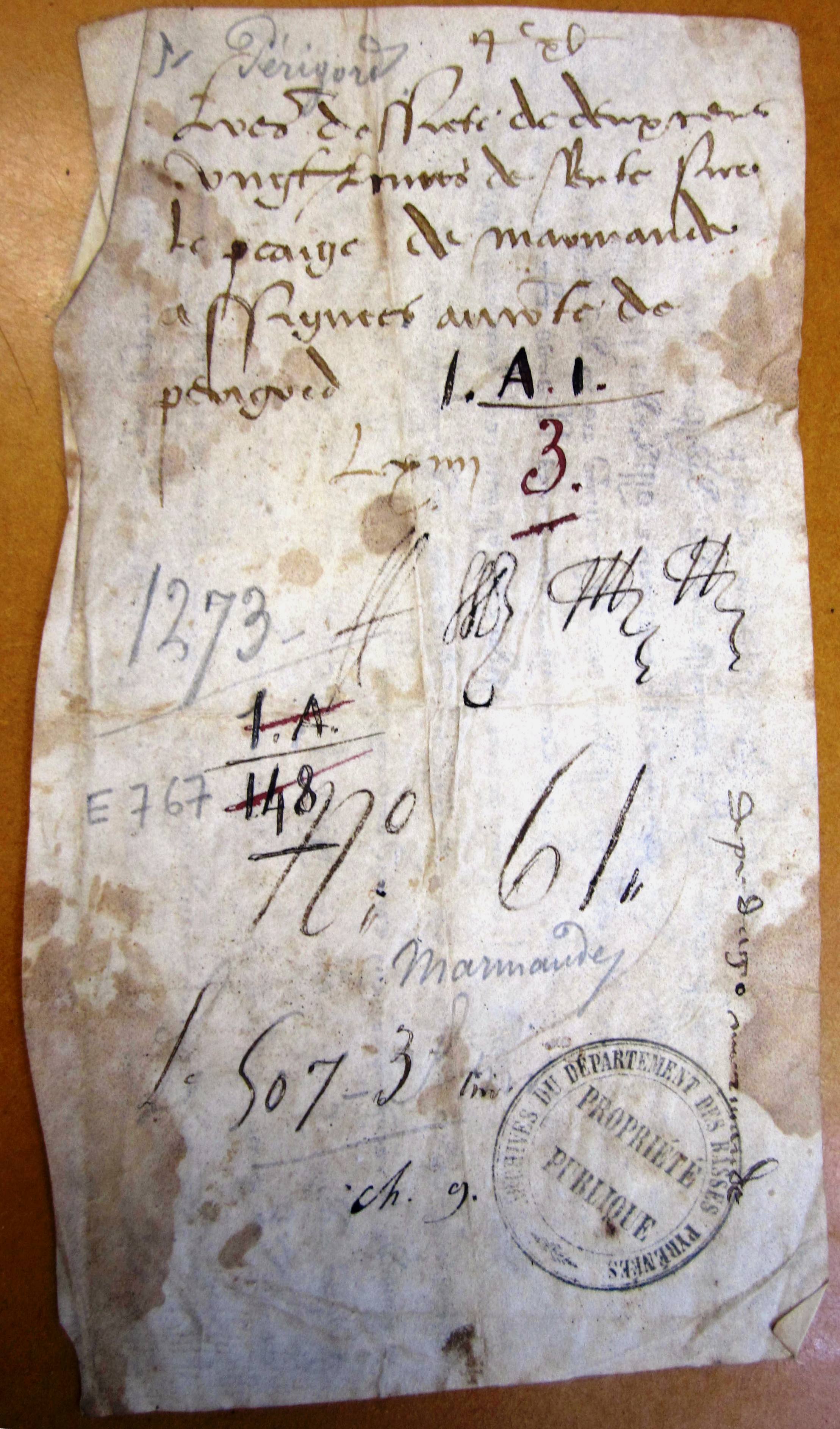 Lettres de Philippe le Hardi au sénéchal d'Agen pour faire assigner à Archambaud III, comte de Périgord, 220 livres sur le péage de Marmande (1273).
