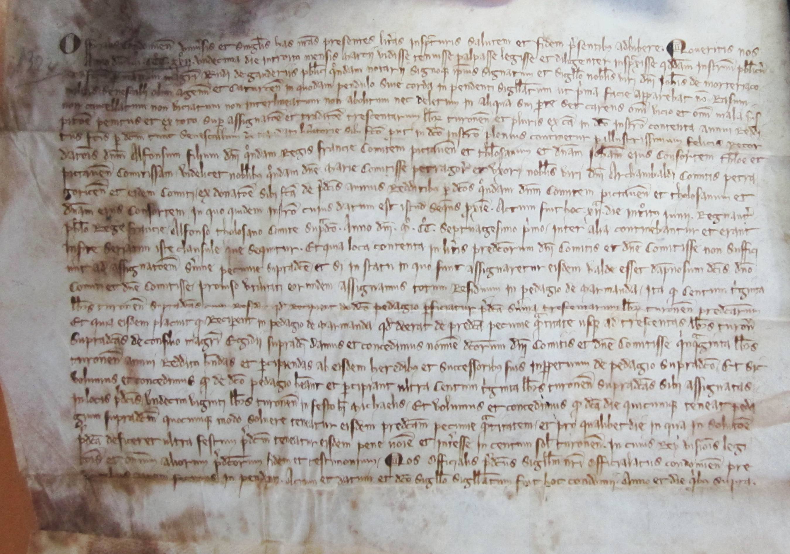 Assiette faite à Archambaud III, comte de Périgord et à Marie sa femme, de la somme de 300 livres de rente, dont 50 assignées sur le péage de Marmande (1271)