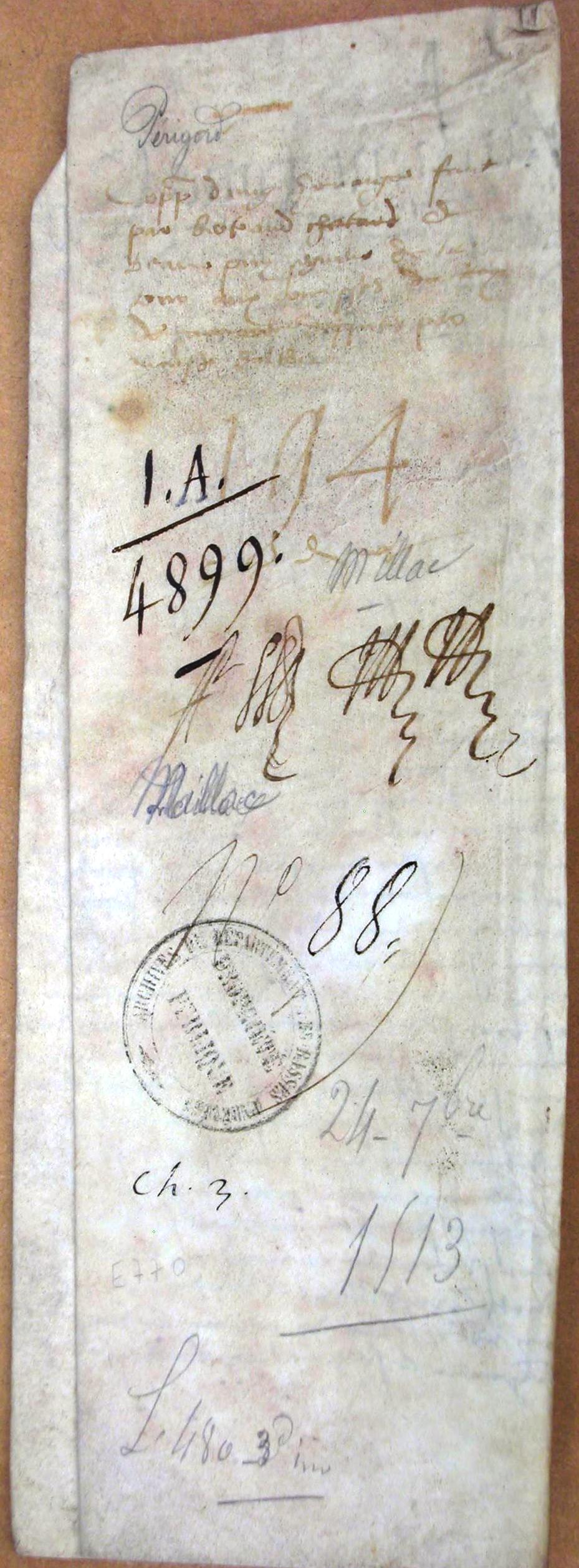 - chapitre n° 3 (hommages), cotté n° 194 dans le registre E 607 (inventaire de Jean Fabre des archives du château de Montignac en 1546)