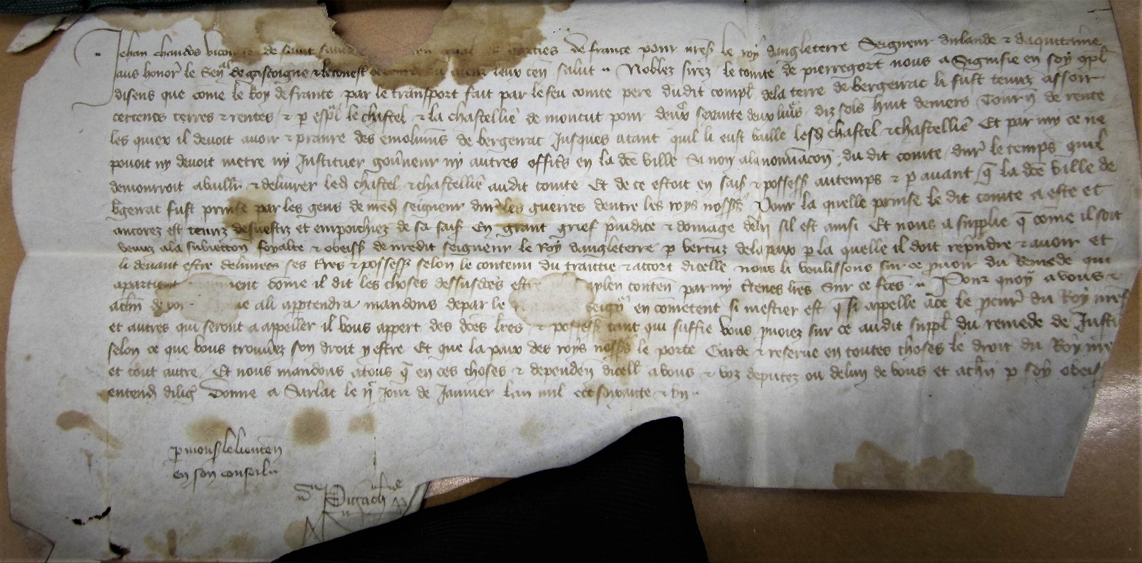 Lettres de Jean Chandos, lieutenant du roi d'Angleterre, au sénéchal