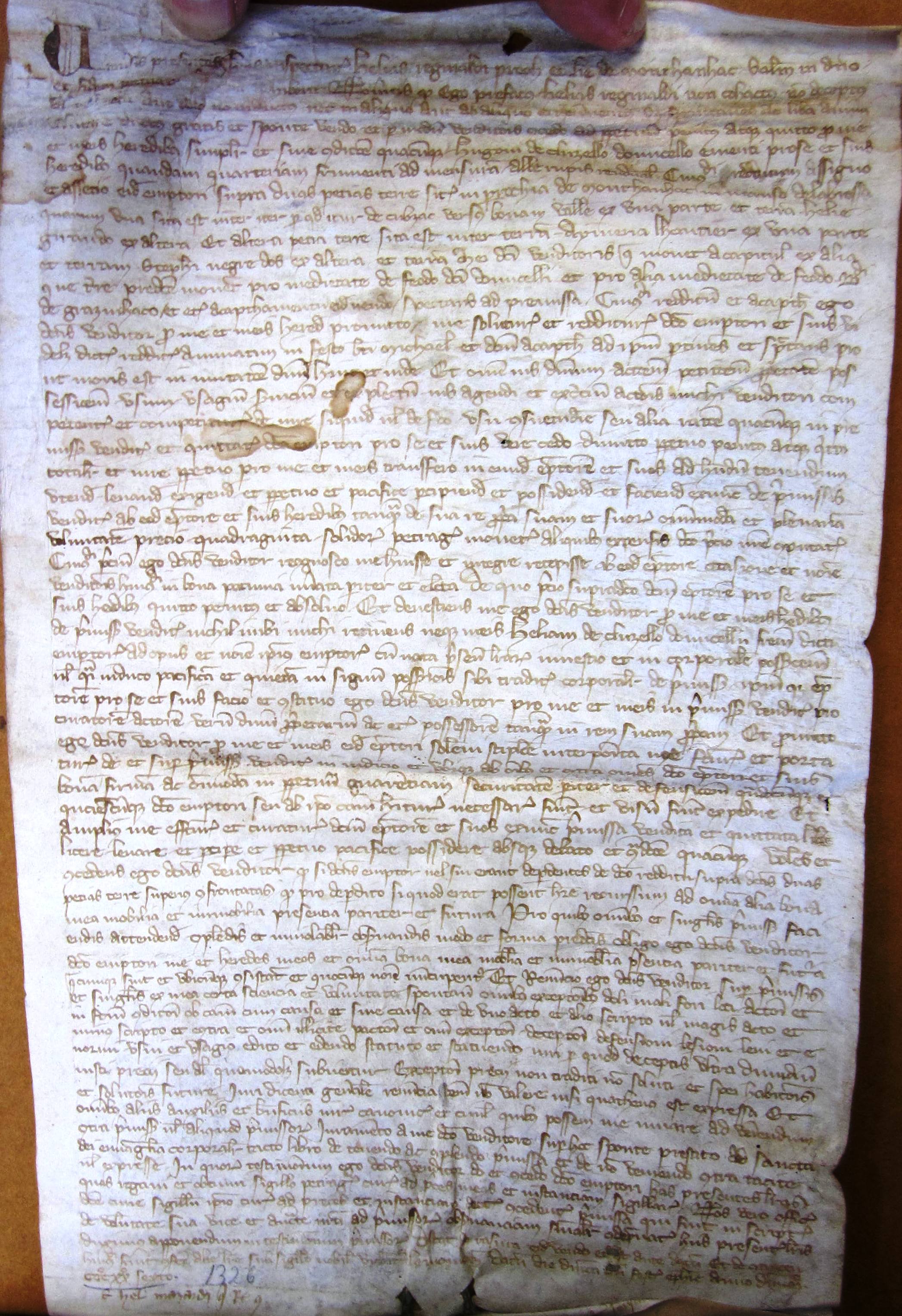 Acquisition de terres faite par Hugues de Cluzel auprès de Hélie Reginald de Montignac (1326).