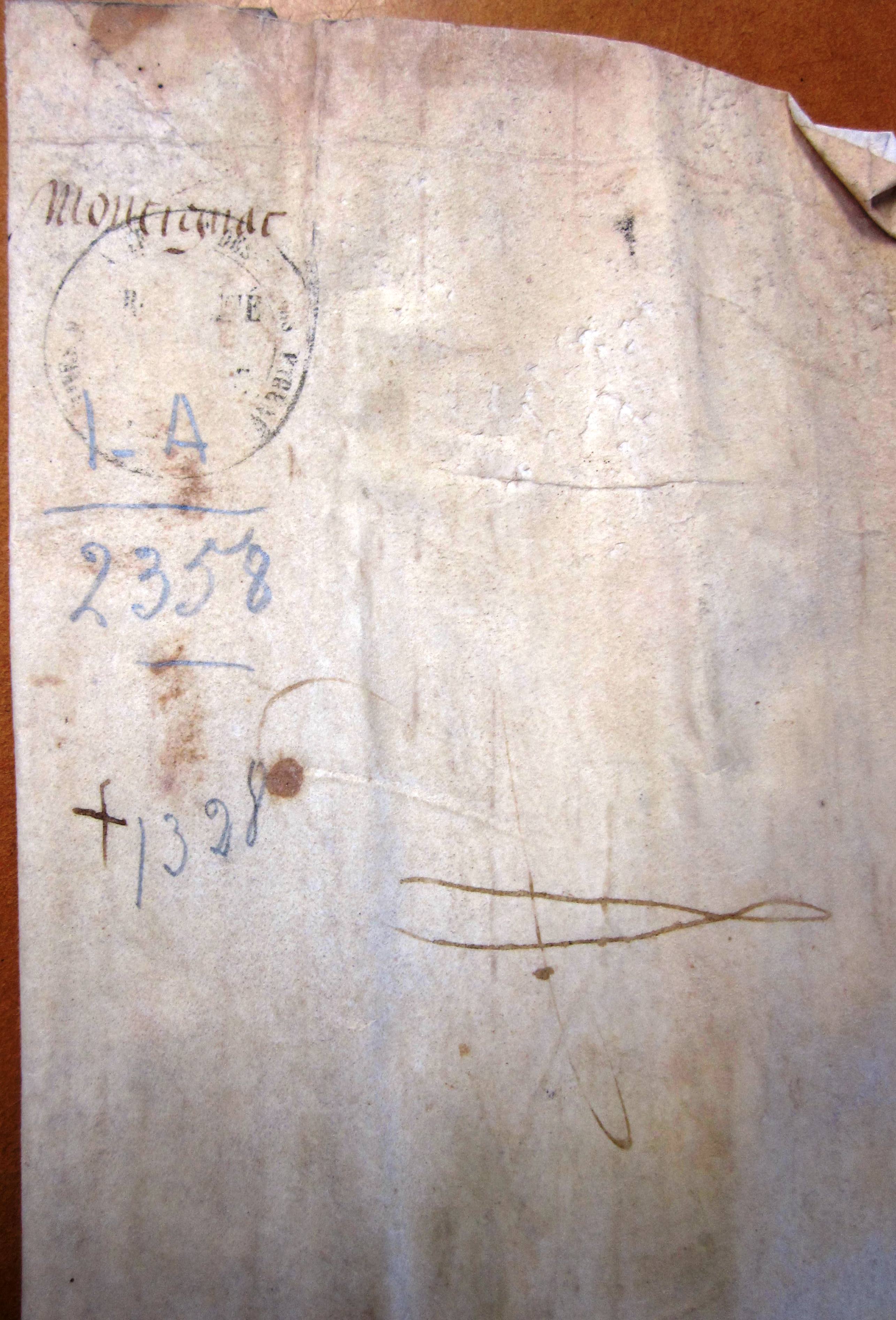 ce document faisait partie d'une liasse cottée n° 66, chapitre 42 (Montignac et Bergerac) dans l'inventaire Périgord de Jean Fabre (voir registre E 607 sur ce site, f° 388 r°), avec le descriptif suivant: "liasse de plusieurs pièces et contrats de personnes privées de la châtellenie de Montignac qui pourront servir pour la réformation du domaine pour les acquisitions que le comte a fait desdits privés".