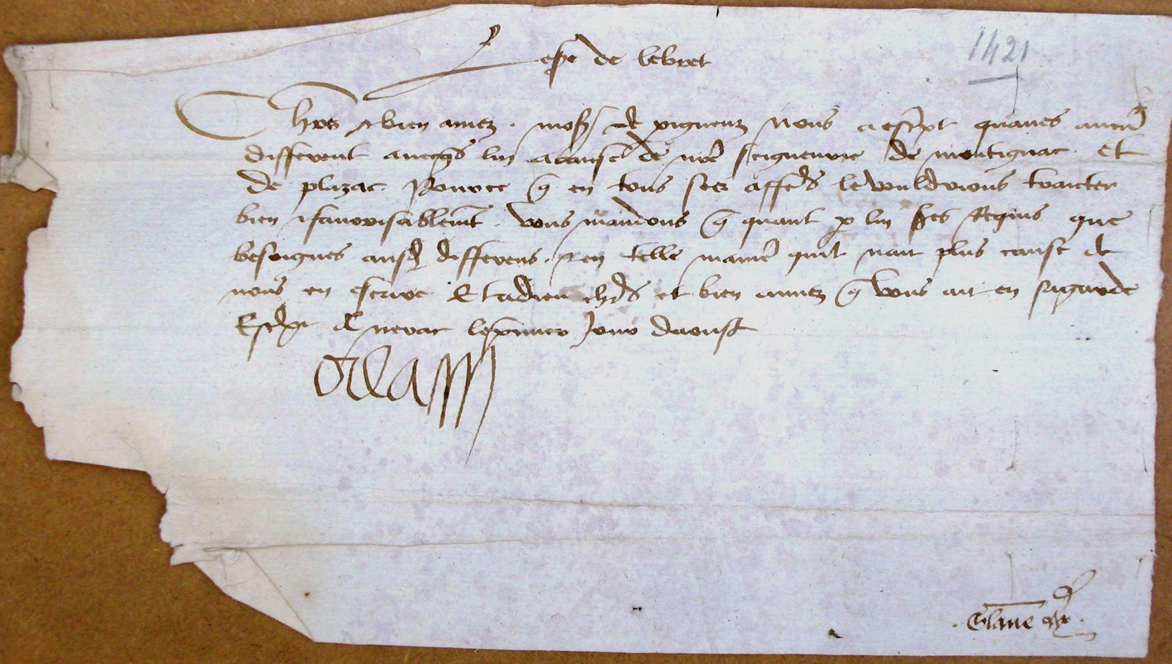Document non transcrit concernant Montignac et Plazac (1421).