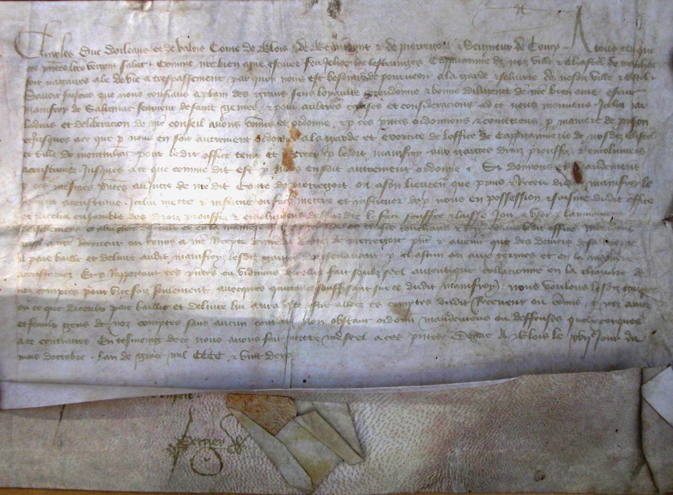 du château de Montignac baillée par Charles duc d’Orléans