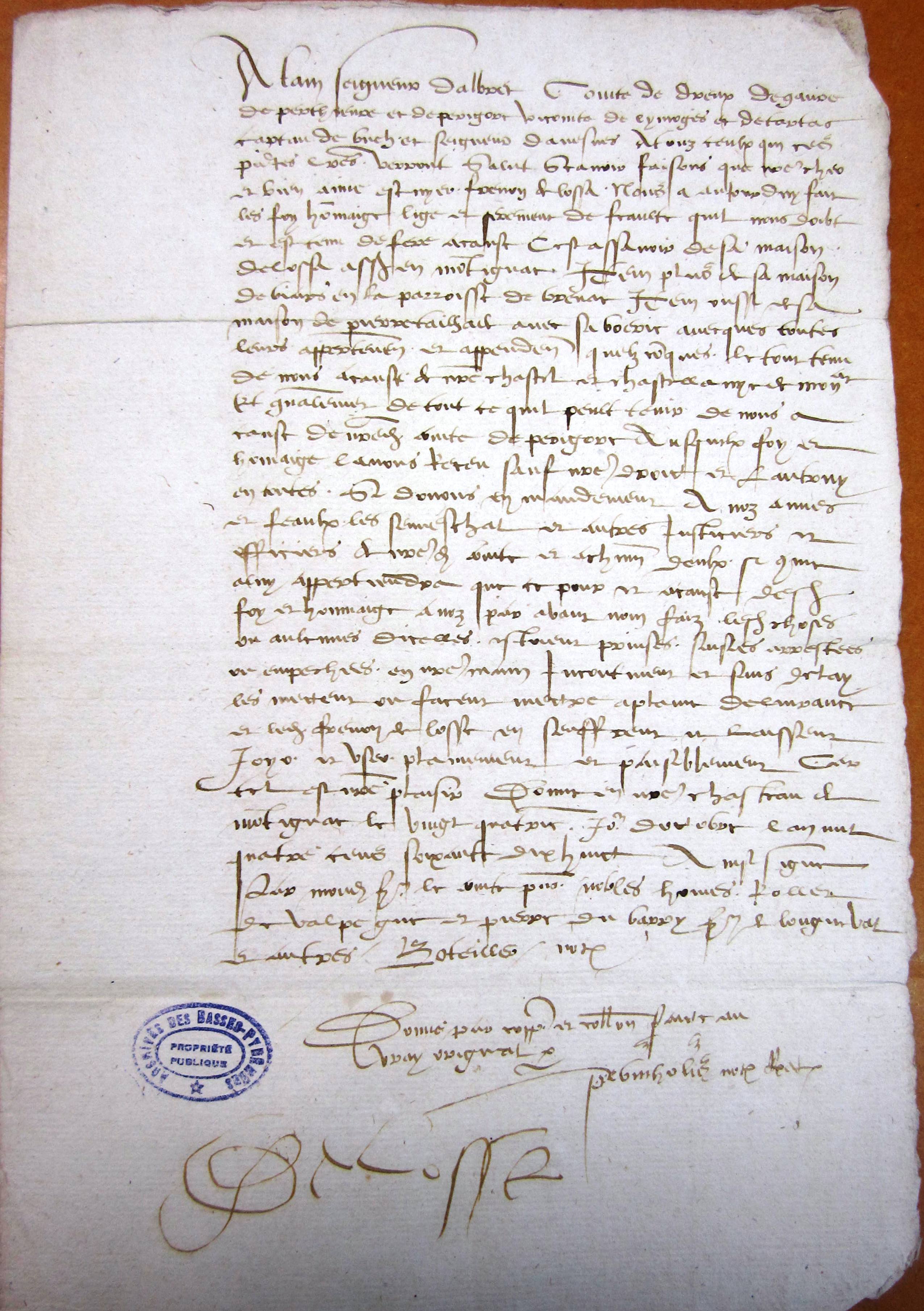 Hommage rendu à Alain d'Albret par Frenon de Losse, pour ce qu'il possédait à Montignac (1478) .