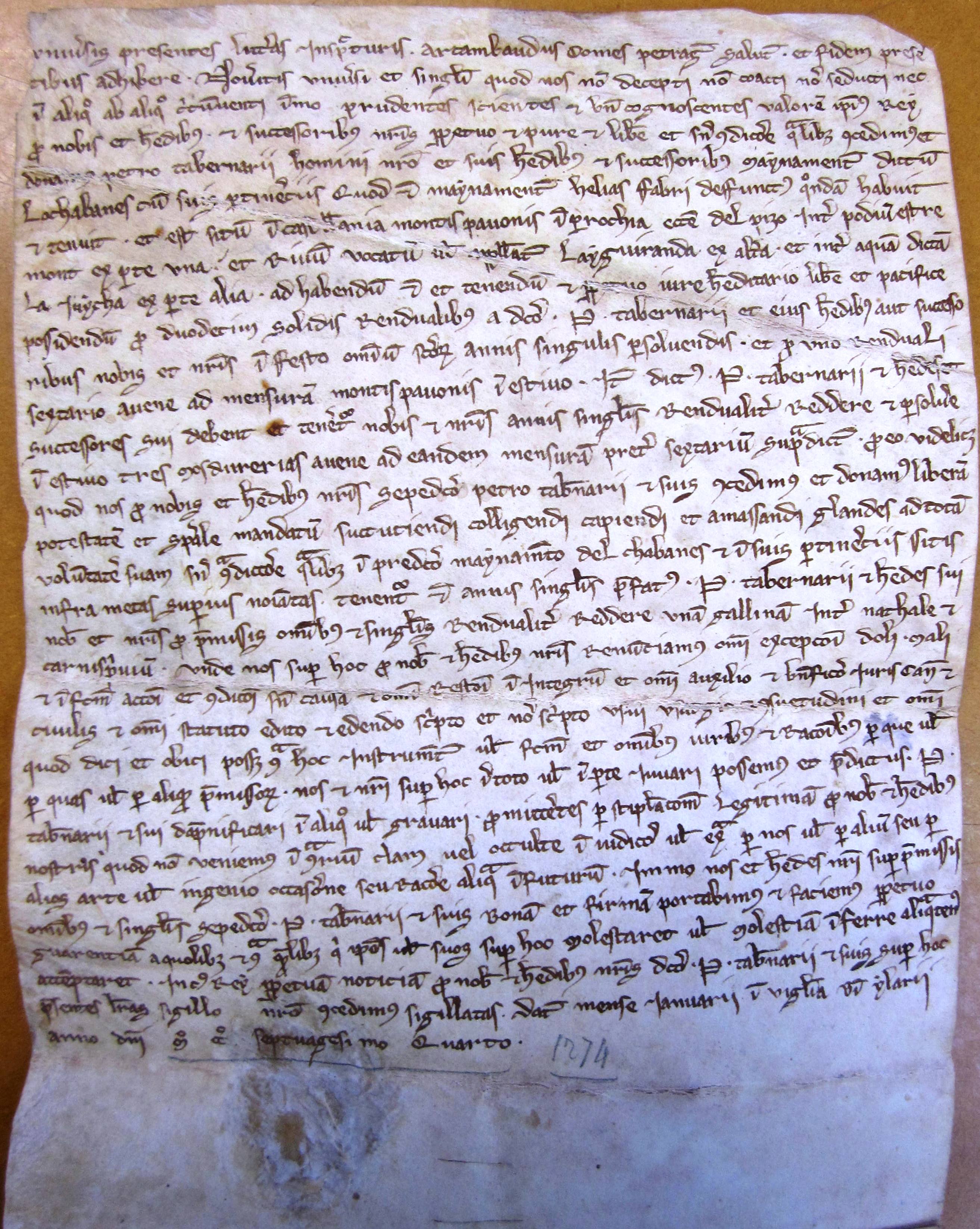 Donation du domaine appelé les Chabanes, dans la châtellenie de Montpon, par le même, à Pierre Tavernier (1274).