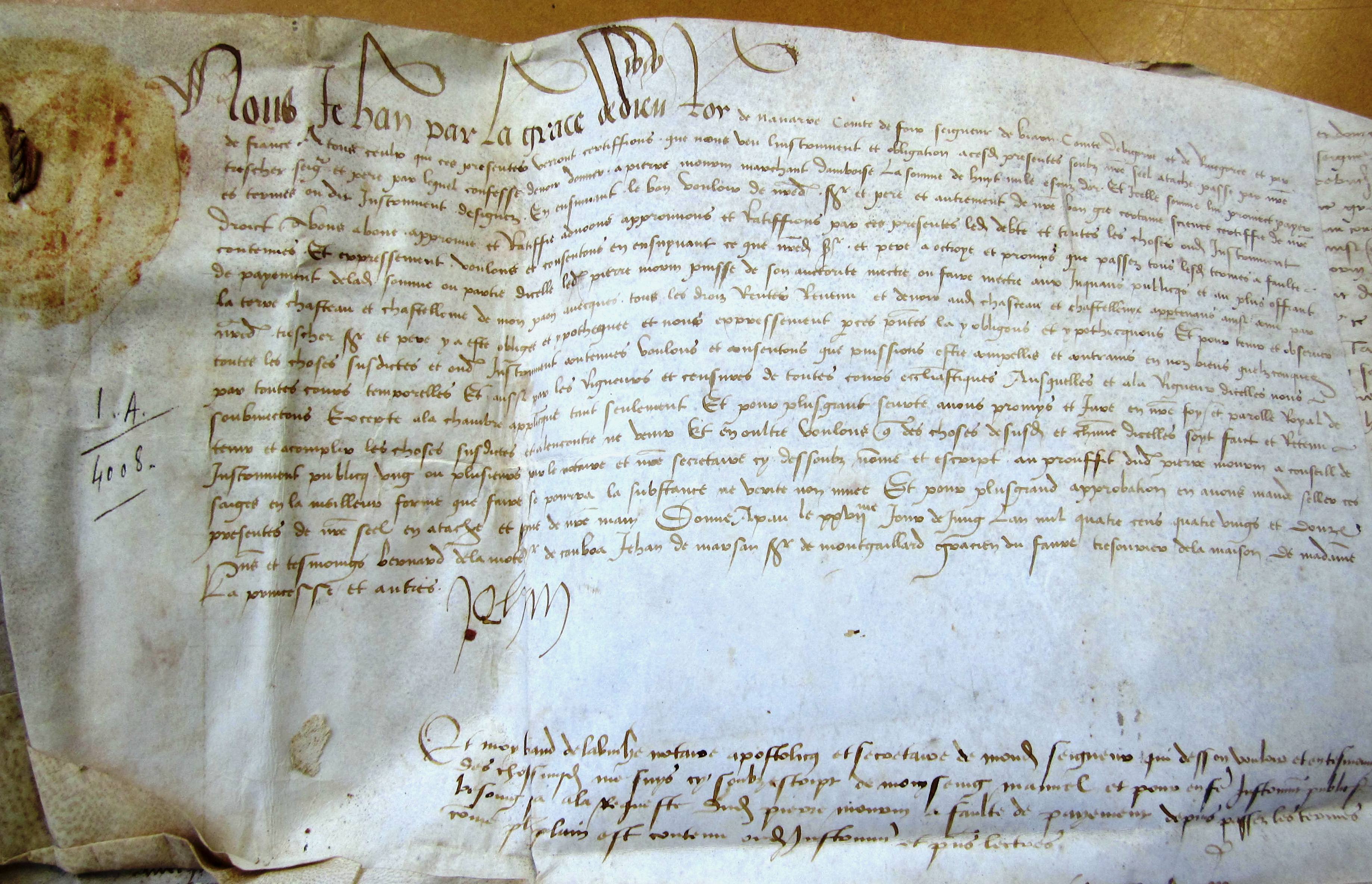 Jean roi de Navarre reconnait devoir à Pierre Mourin marchand d'Amboise la somme de 8.000 écus d'or (22 juin 1492).