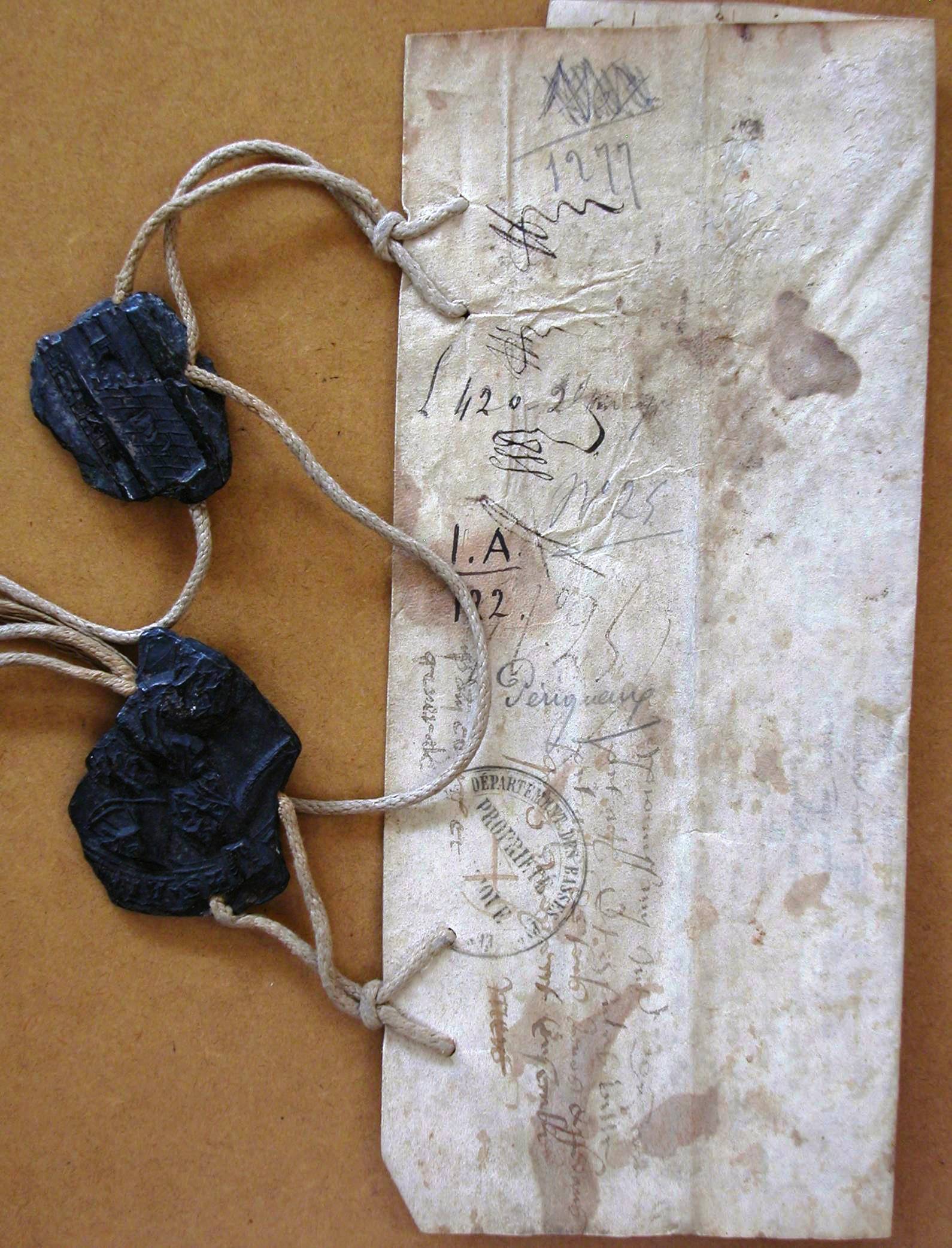 Voir ici les 2 sceaux attachés au manuscrit