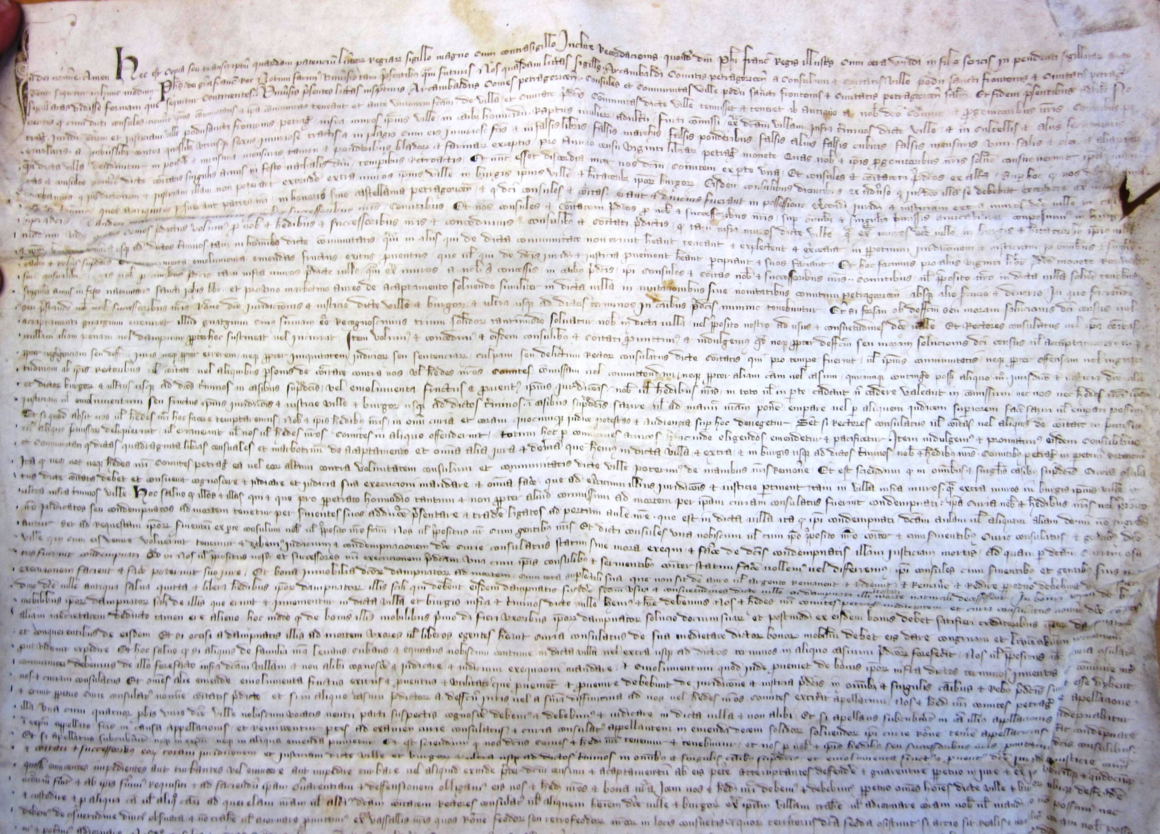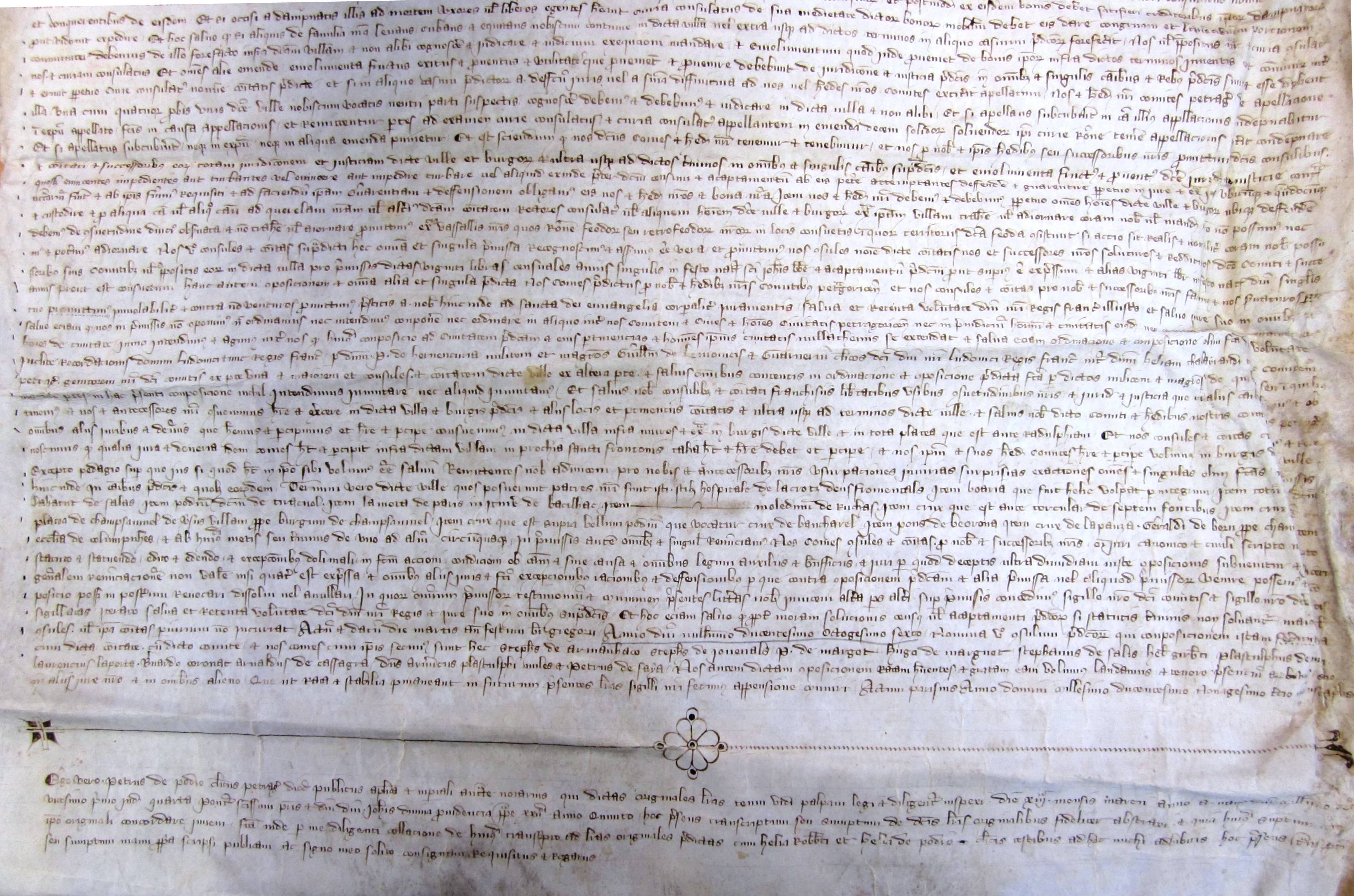 Transaction entre Archambaud III, comte de Périgord, et les consuls de Saint-Front de Périgueux, attribuant la justice de Saint-Front à ces derniers (1286) (vidimus) .