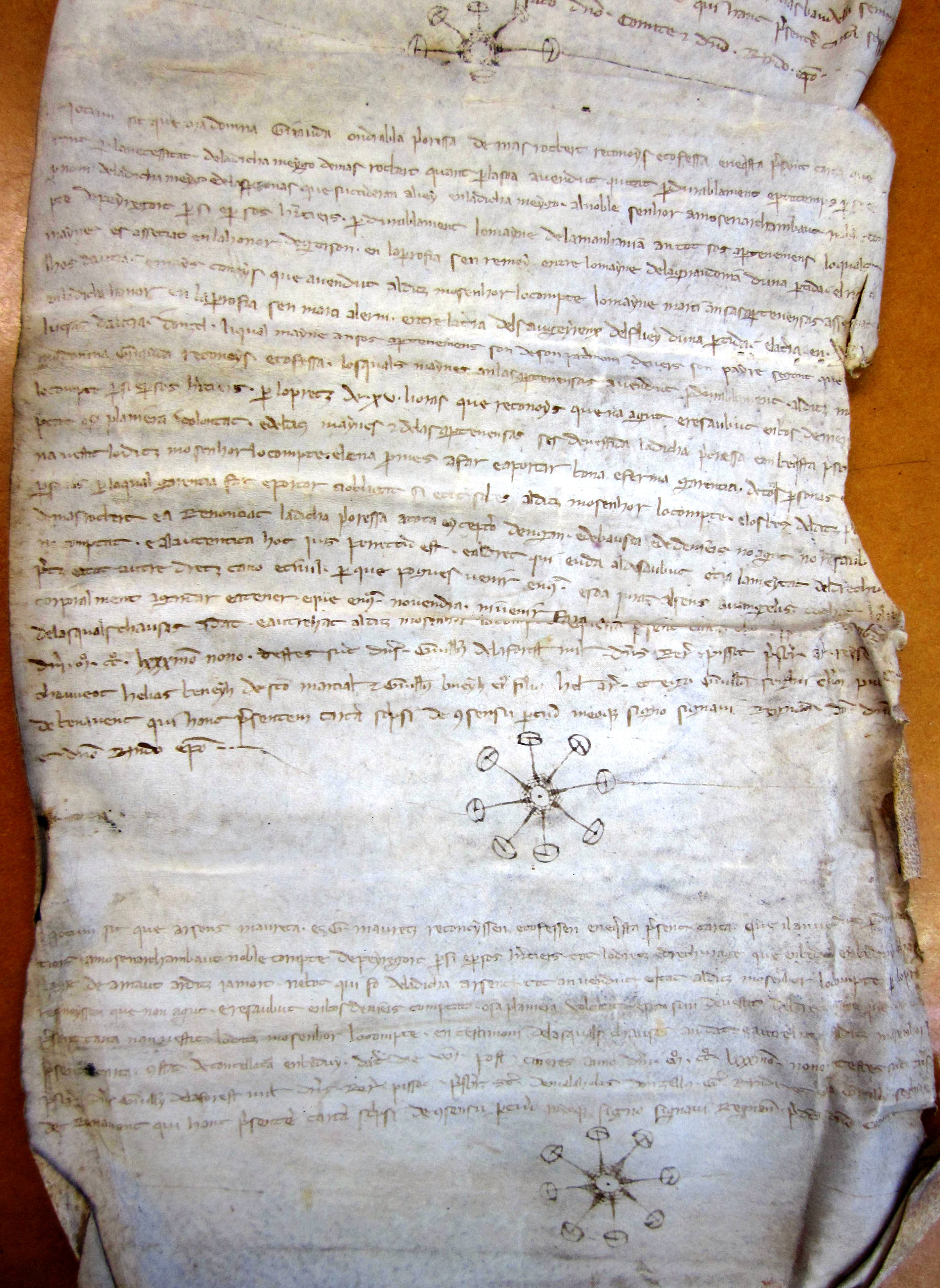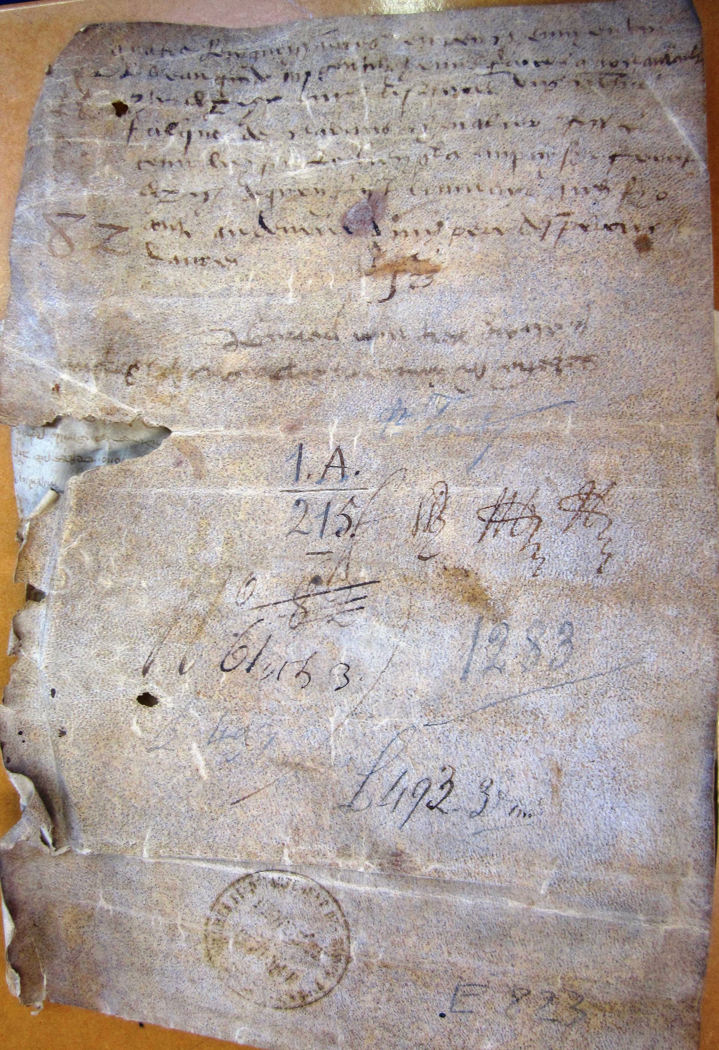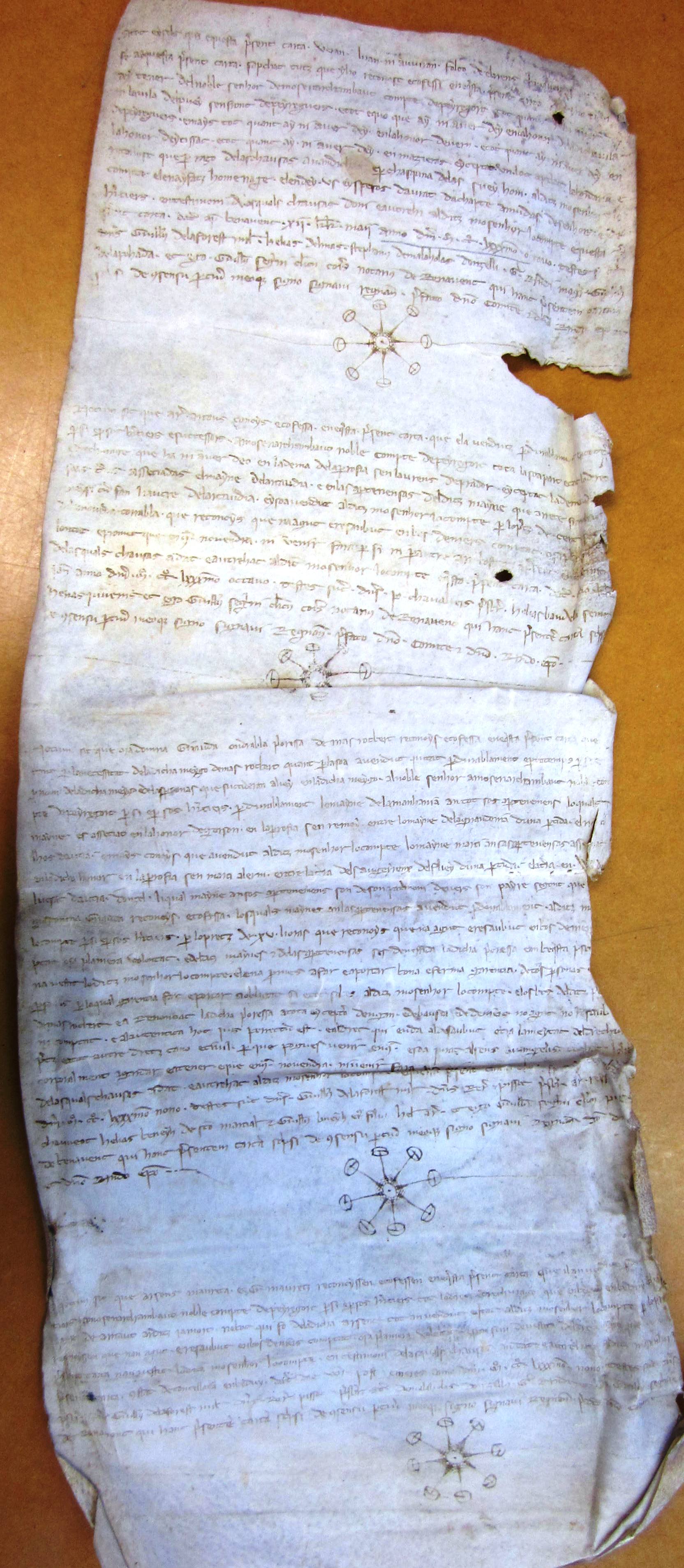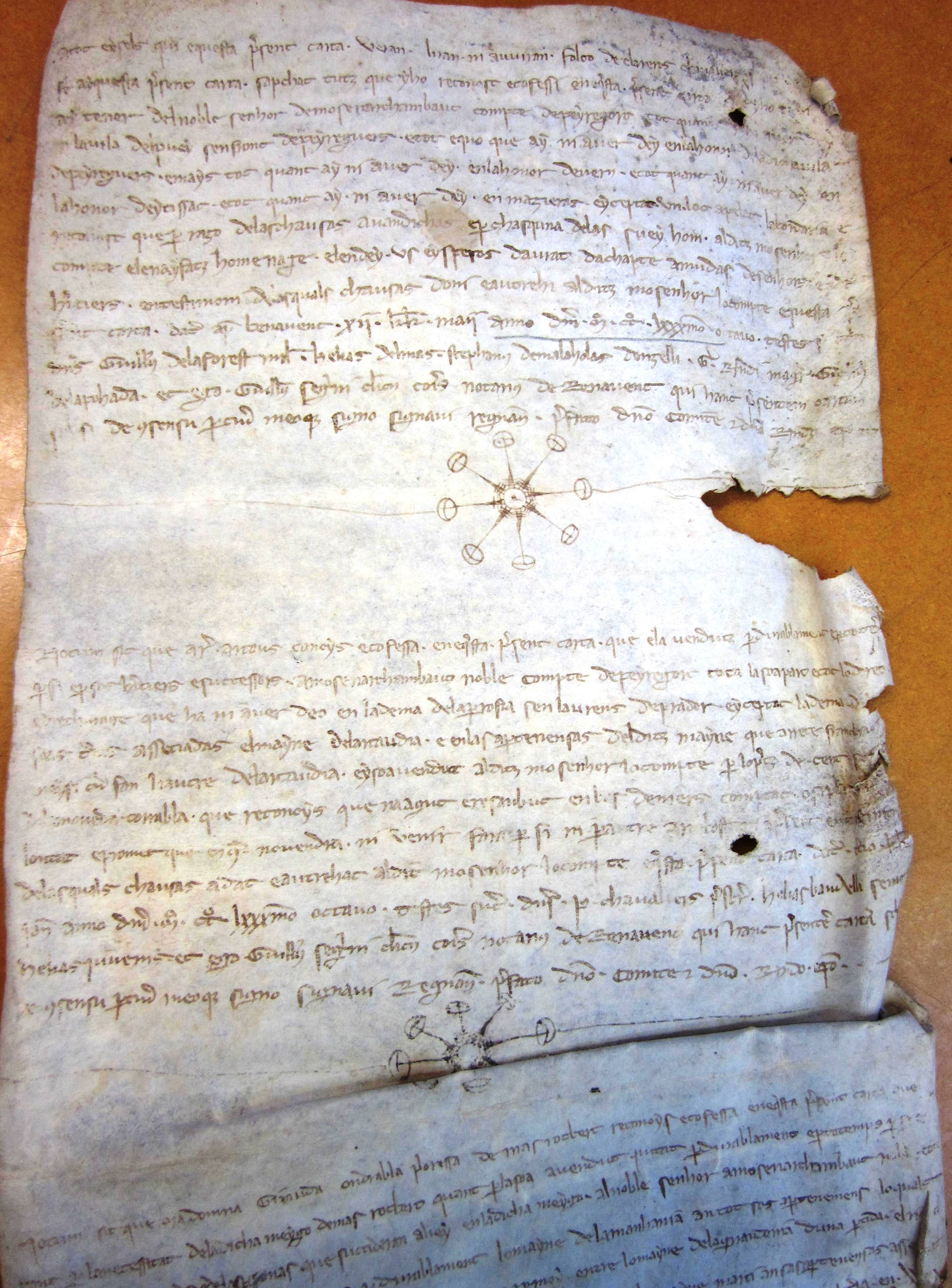 Hommages rendus à Archambaud II, comte de Périgord, par : Foulques de Clarens, chevalier, pour ce qu'il tenait dans la ville de Saint-Front; Arnaud Artous, pour la dime de Saint-Laurent de Prador ; Giraude, prieure du Mas-Robert, pour les biens qu'elle possédait à Gurçon, paroisse Saint-Rémy ; Arsius Maurel (1283-1289) (en occitan).