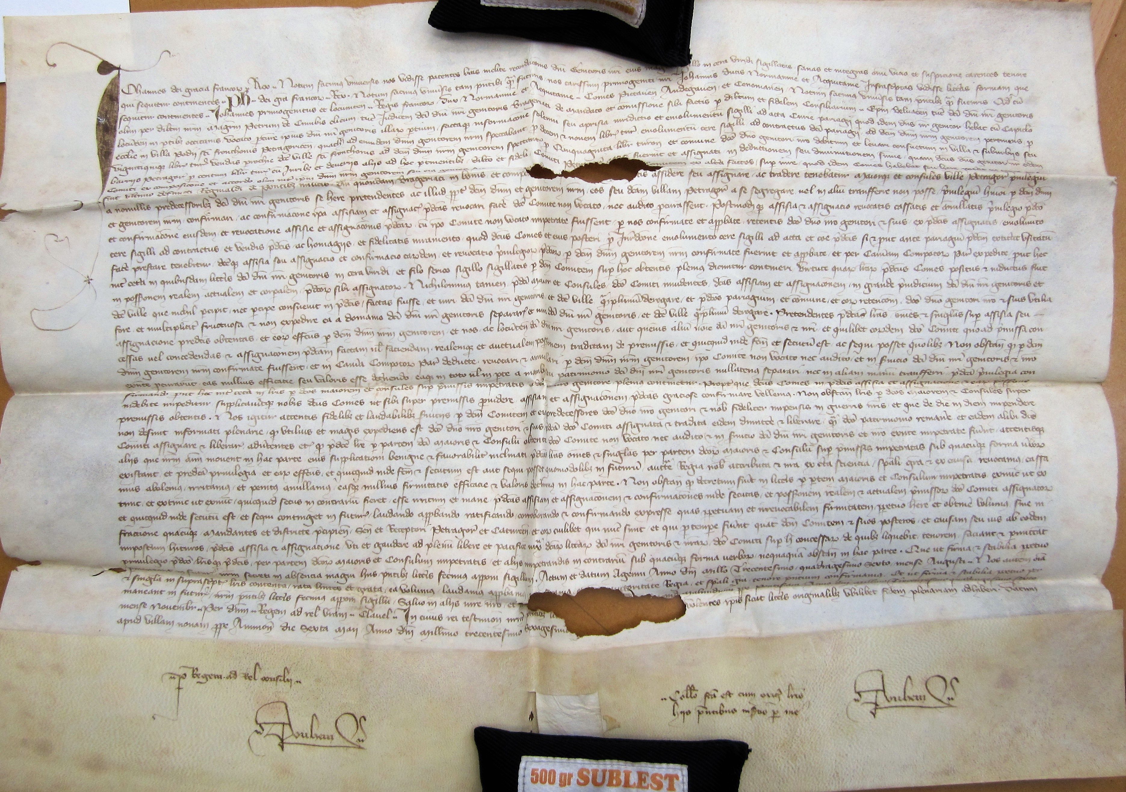 Confirmation du roi Jean touchant l'assiette faite au comte de Perigord par le juge de Bergerac sur les pariage de St Front et commun de la ville de Périgueux (6 mai 1360)