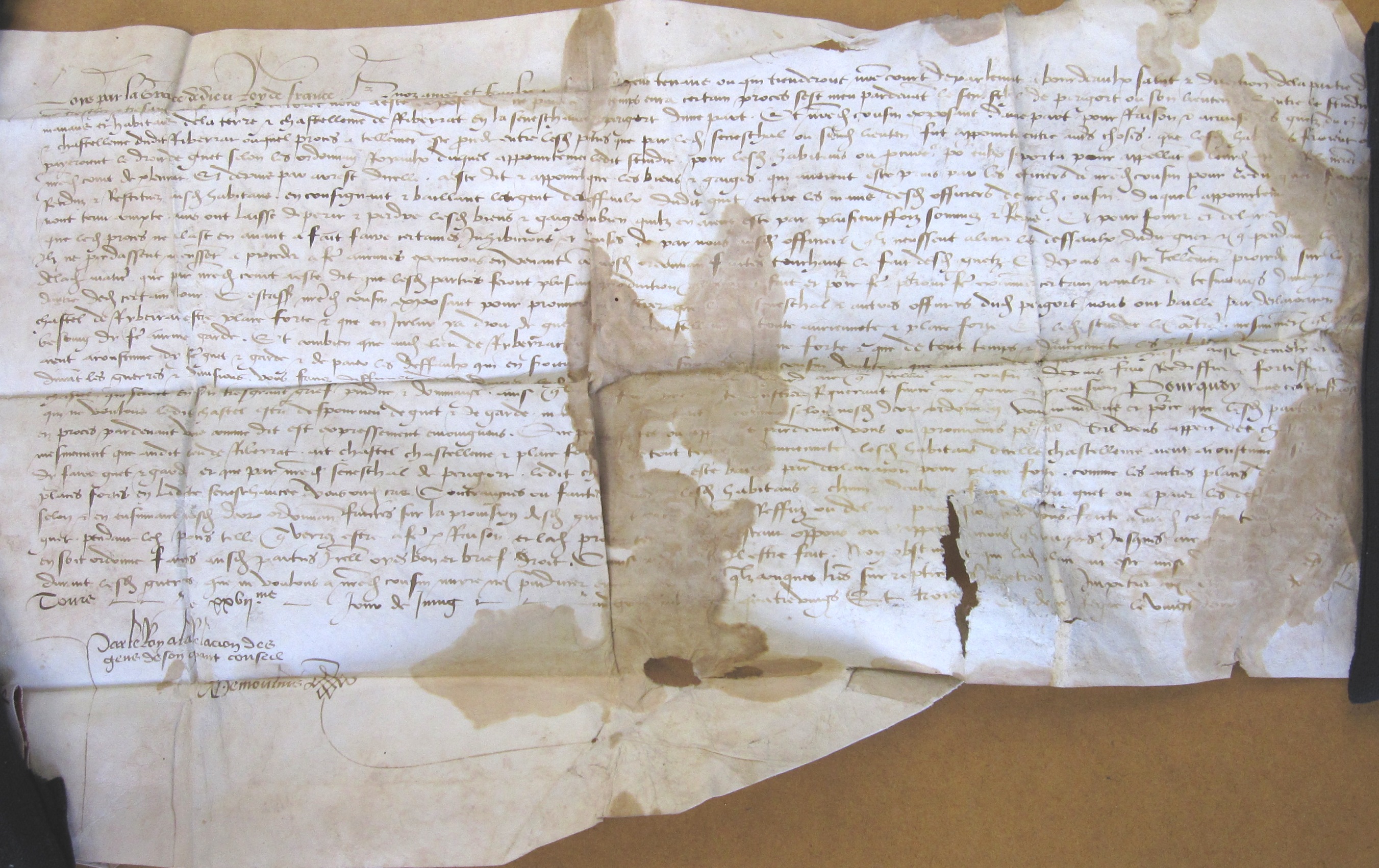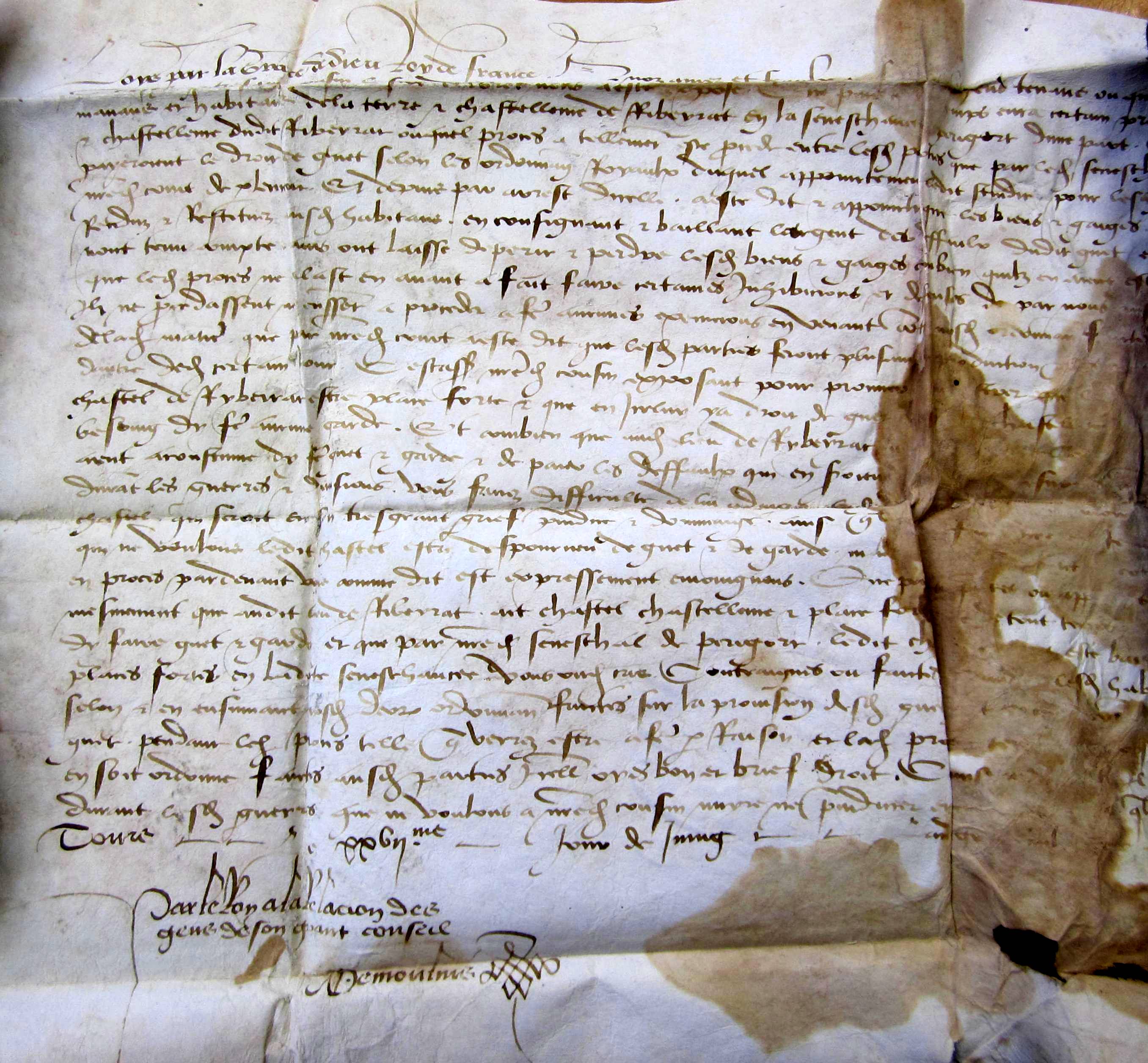 Lettres de Louis XI accordant au sire d'Albret le droit de fixer la contribution due par les habitants de Ribérac pour la garde du château de cette ville (1483).
