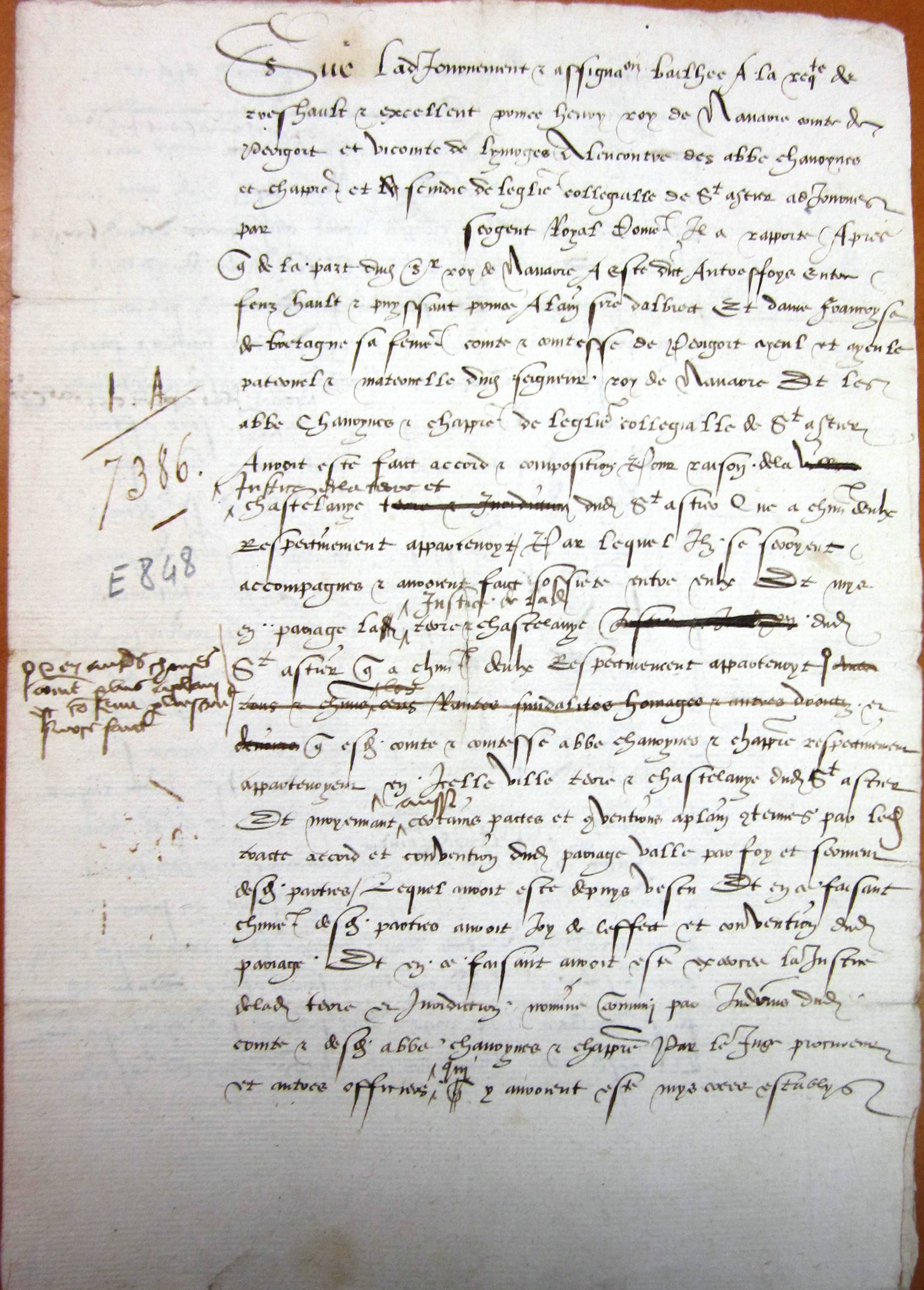 Mémoire pour le roi Henri de Navarre concernant le pariage de Saint Astier (16ème siècle).