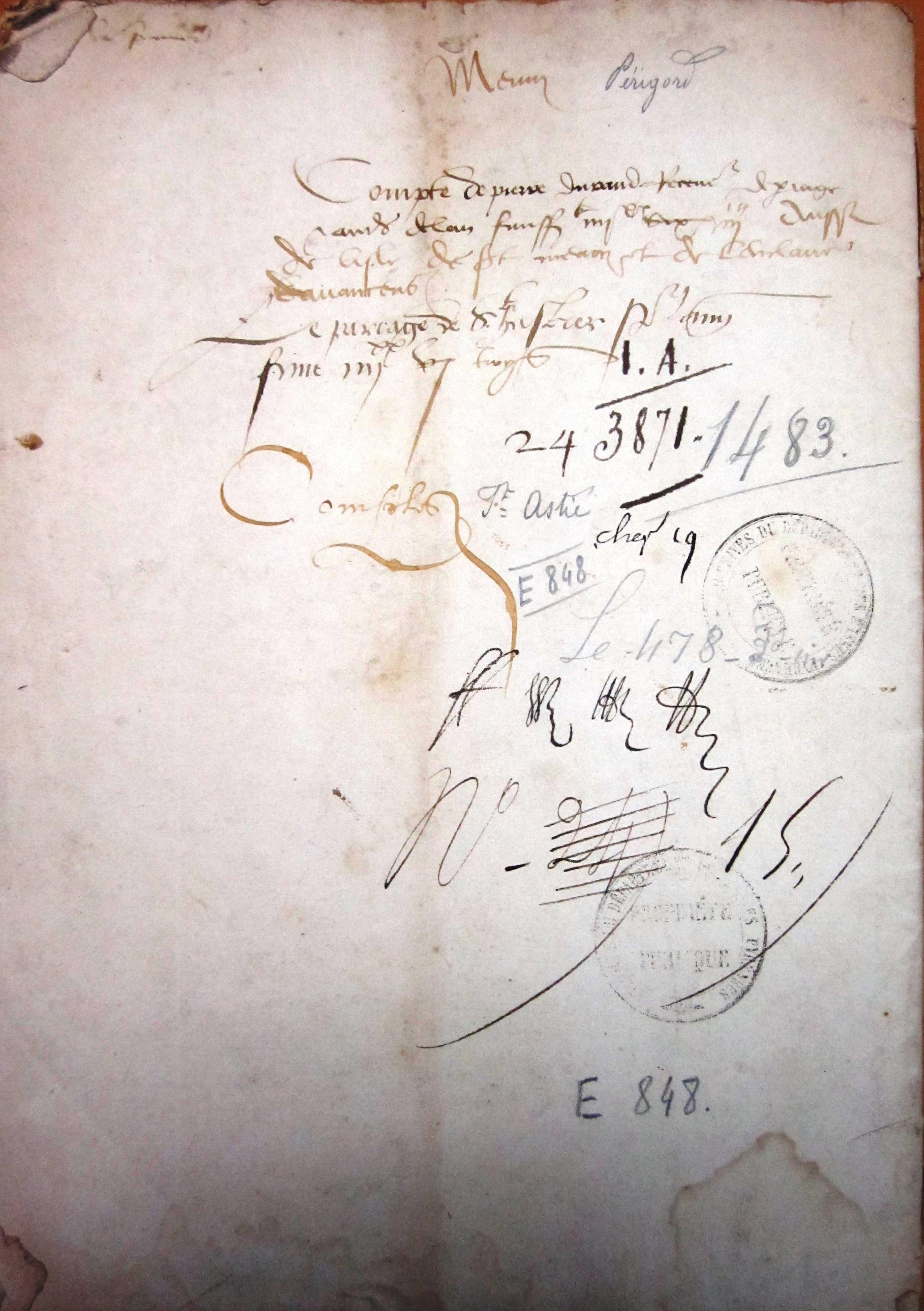 Compte rendu par Pierre Durand, receveur de Saint-Astier, à Alain d'Albret, comte de Périgord (1483).