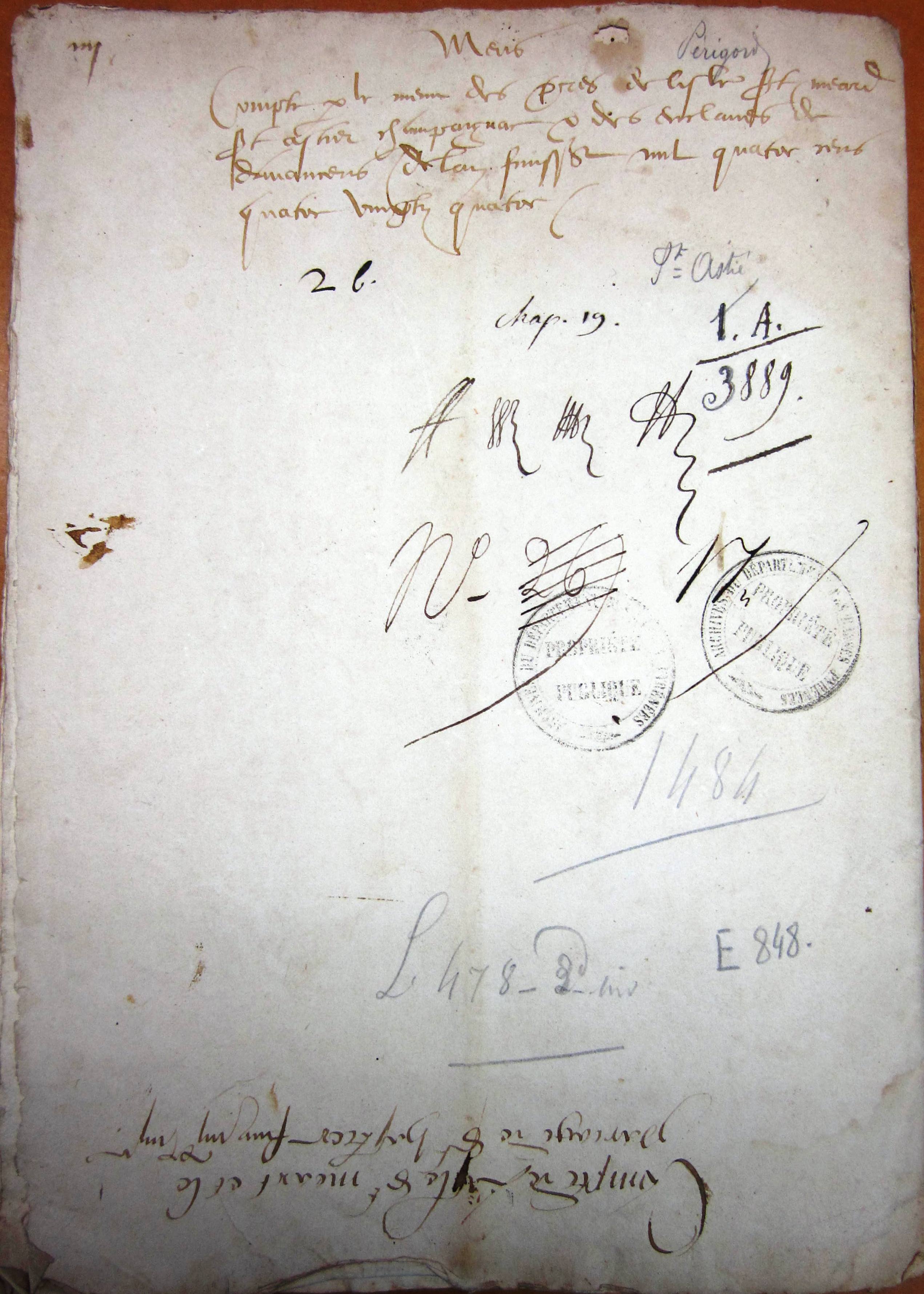 - document transcrit (très partiellement) par l'abbé Leydet, in BnF, Fonds Périgord, tome 9, recueil n° 4 p. 94. Voir ici cette transcription.