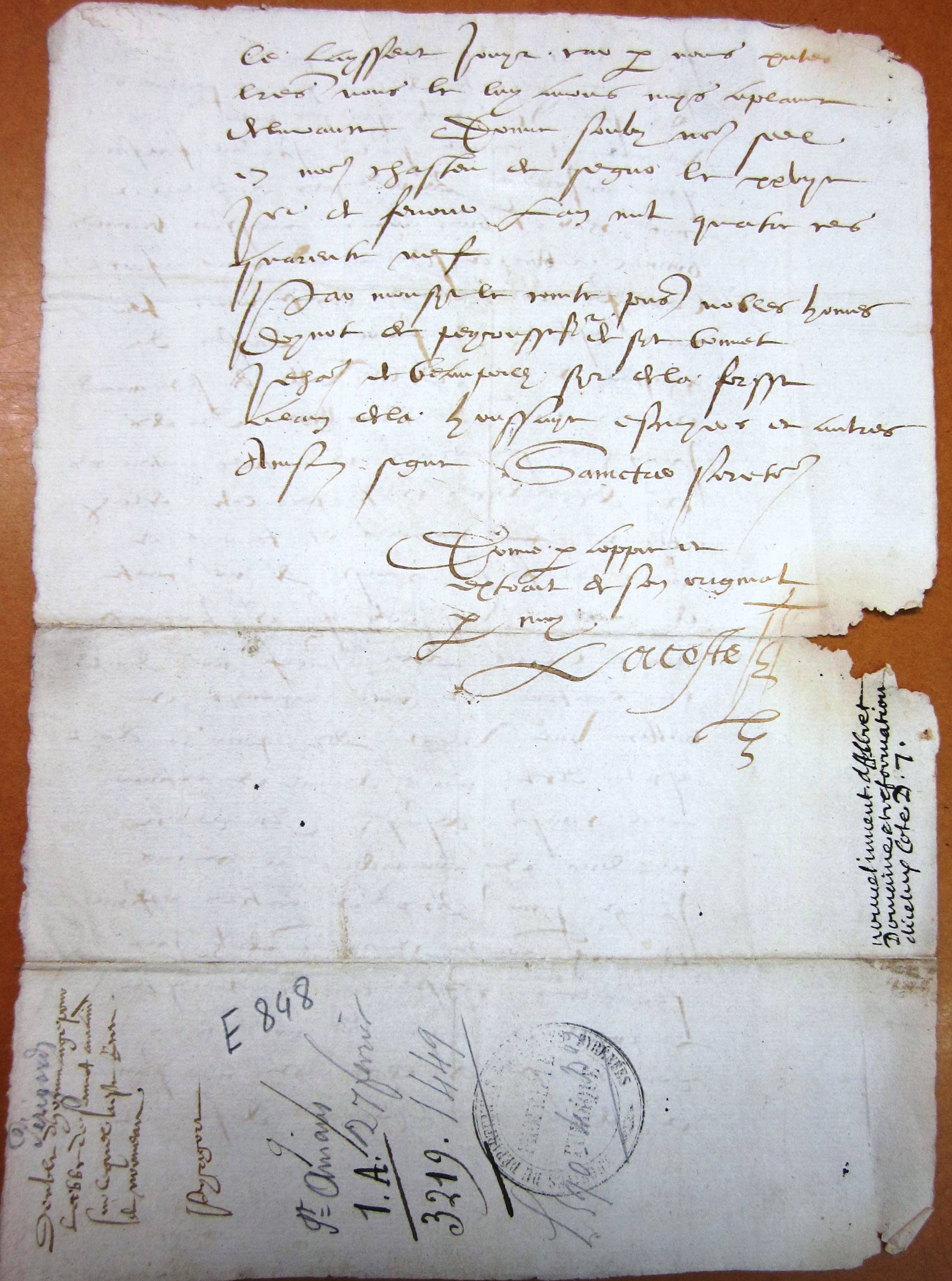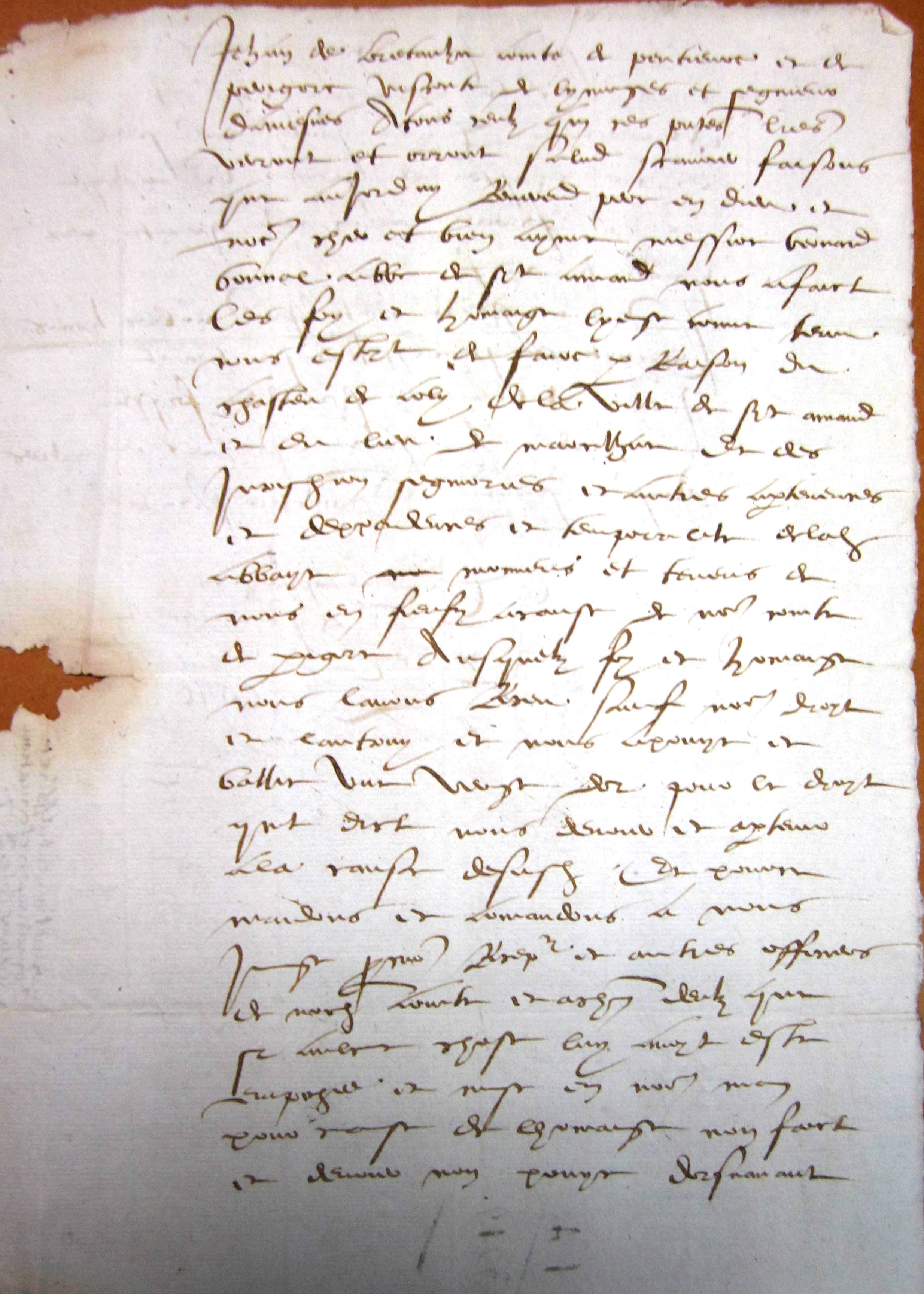 Hommage rendu à Jean de Bretagne, comte de Périgord par Bernard Bonnal, abbé de Saint-Amand ; la redevance était une verge d'or (1449).