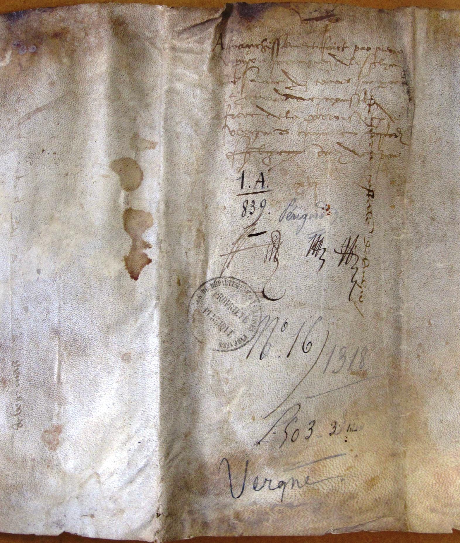 - chapitre 46 ( Vergt ), cotté 16 dans l'inventaire de Jean Fabri - E607 (f° 402 r°)