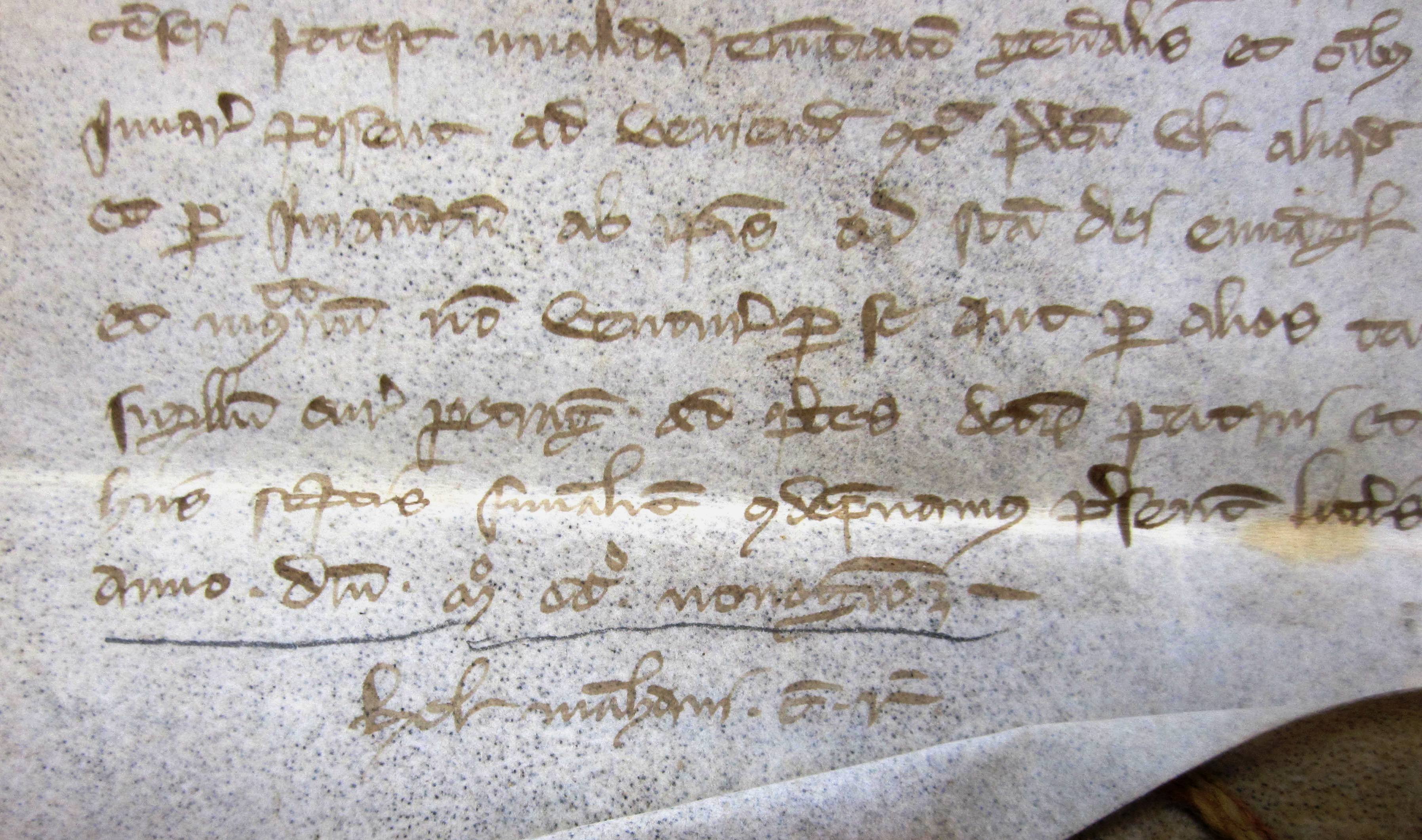 détail sous la pliure de la partie inférieure (avec le nom d'Hélie Manhani):