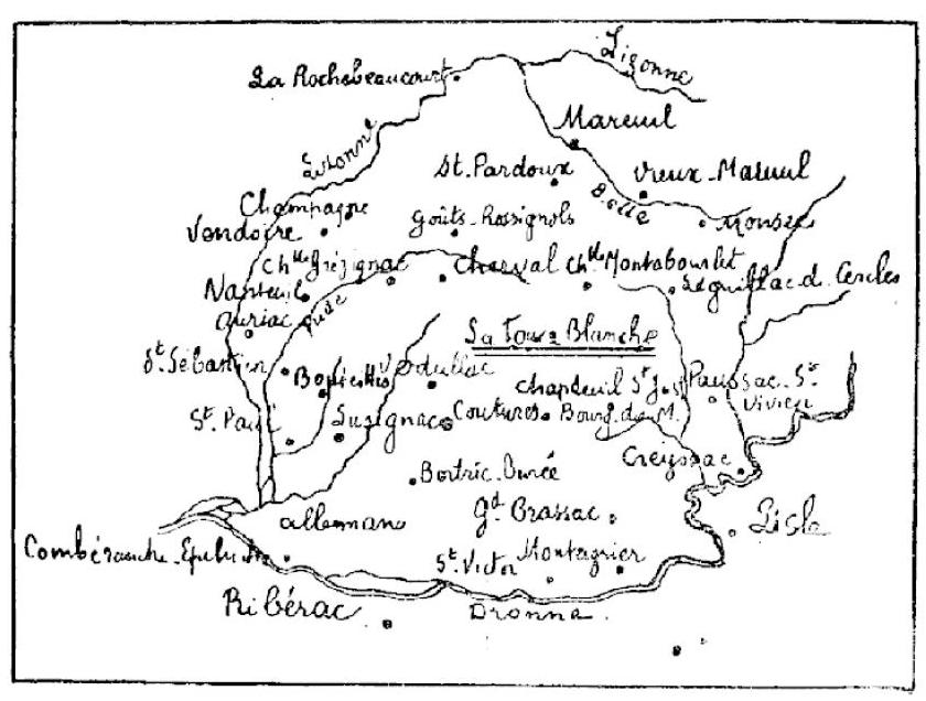 entre la Lizonne qui confine à l'Angoumois, et la Dronne. (V. la carte.)