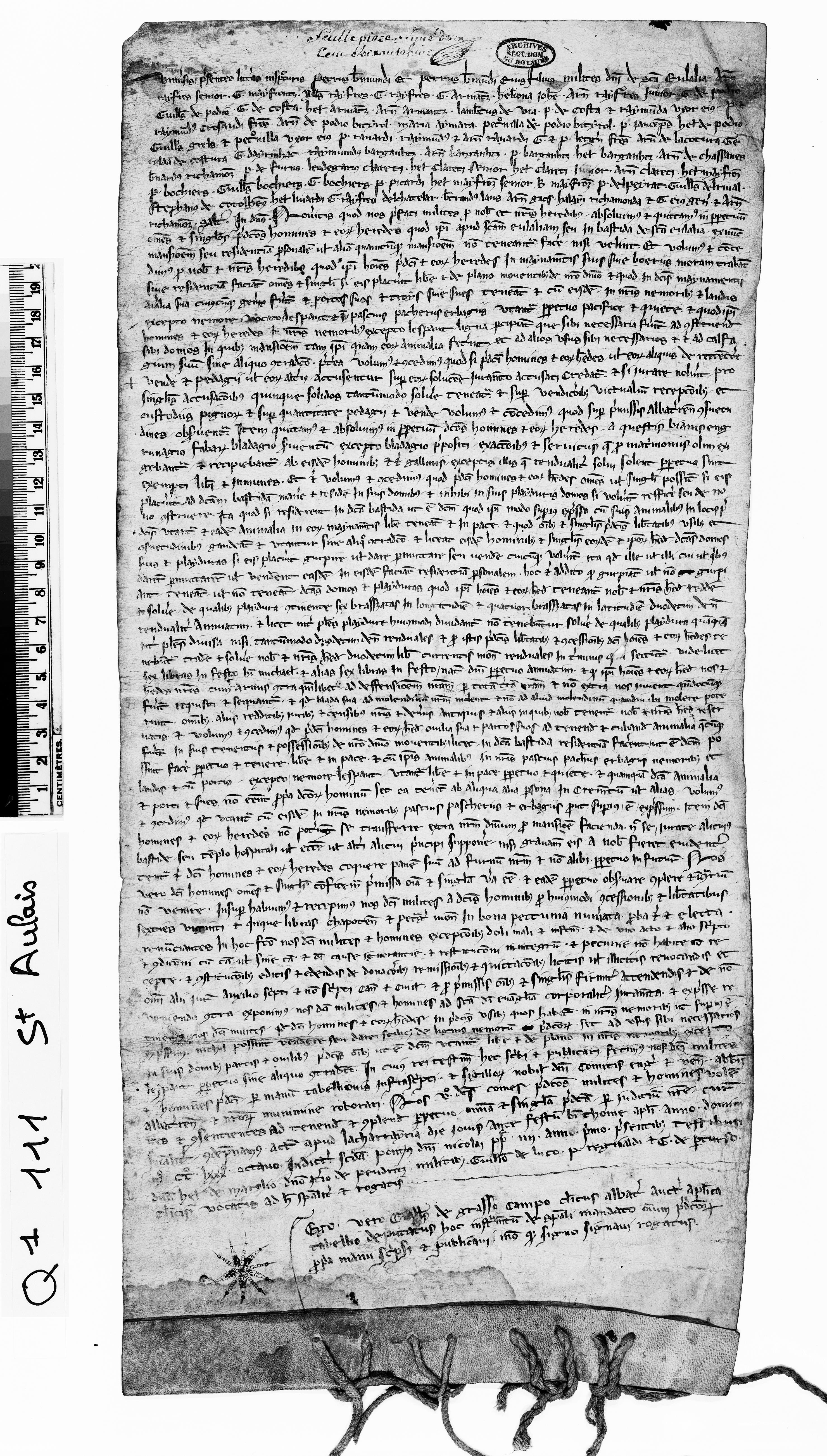 pontificatus domini Nicolai pape IV anno primo. Presentibus testibus domino Hel. de Mariolo, domino Iterio de Peudraz, militibus, Guillelmo de Luco, P. Reginaldi et G. de Precurso, clericis.