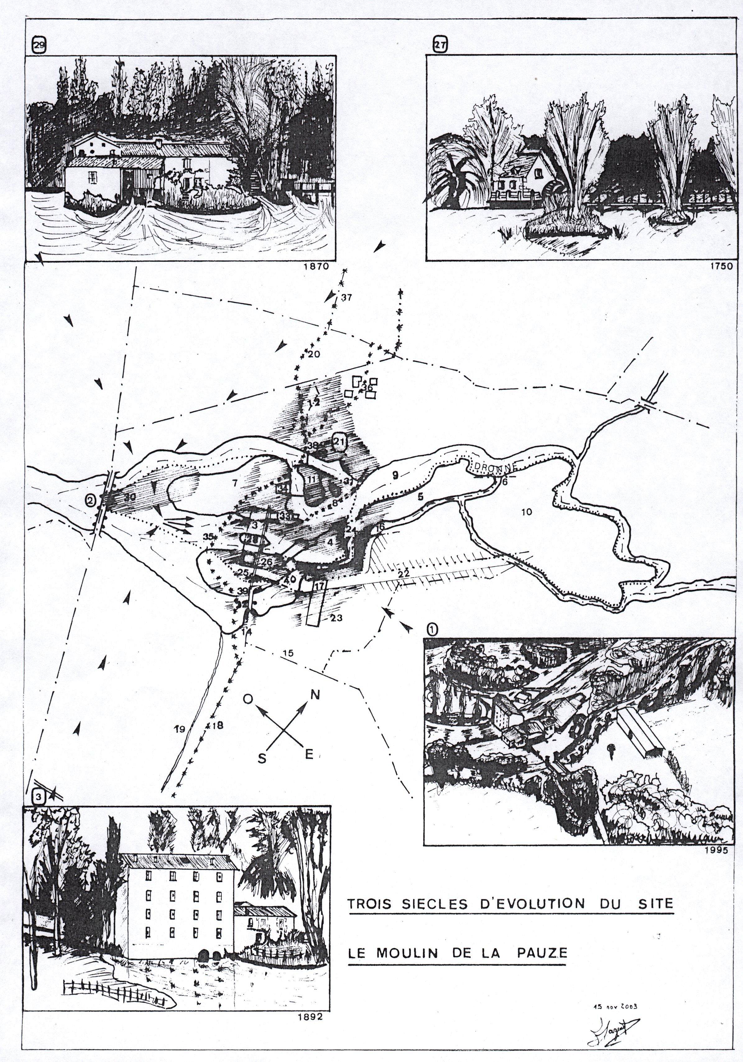 Au présent (voir carte ci-dessous), le moulin de la Pauze est un ensemble de