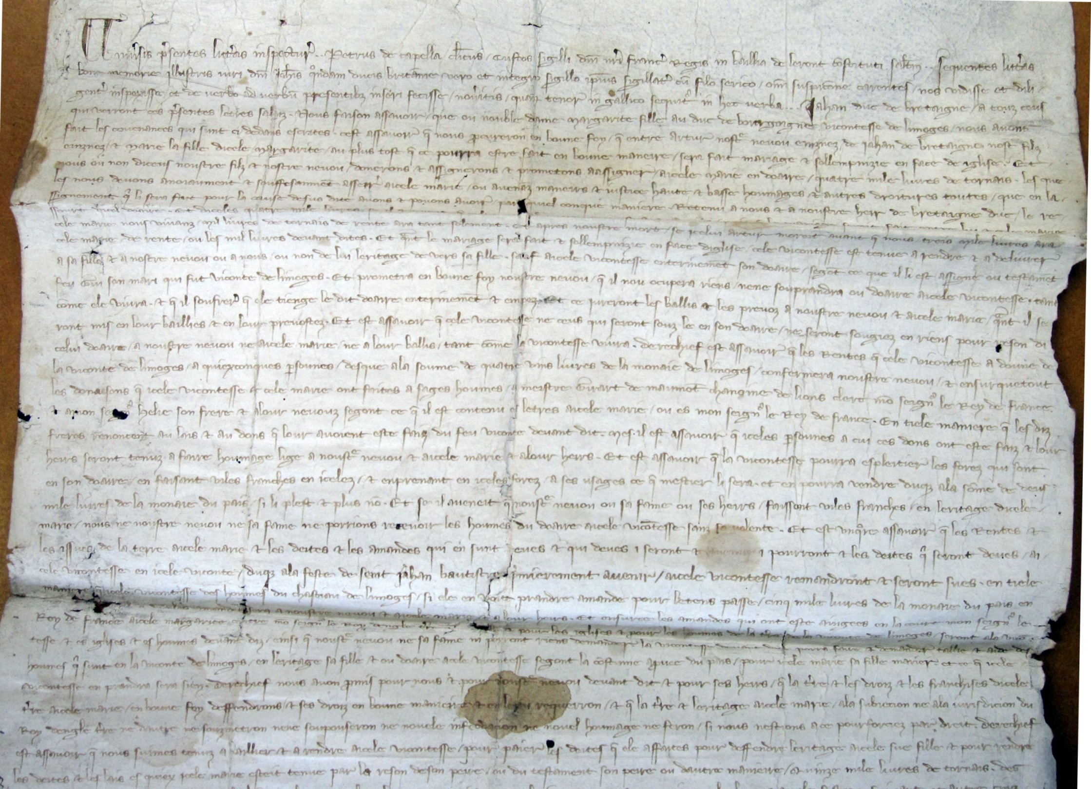 Contrat de mariage d'Arthur, fils de Jean I er, duc de Bretagne, avec Marie de Bourgogne, fille de Marguerite, vicomtesse de Limoges (1274) .